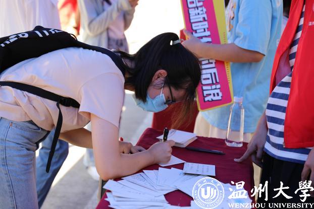 “寄信于己,规划未来,祝福他人,传递美好”。报到前,av天堂 提前收集了来自院领导、班主任老师、辅导员、学长姐的新学期祝福卡,在报到点以抽盲盒的形式由新生随机抽取,每位新生抽取完之后需写一张自己给他人的祝福卡再次放入抽卡袋。校党委副书记庄兴忠在参观av天堂 大本营时,参与到本次的“启航”祝福卡活动,为一名幸运新生送上祝福并合影留念。新生们在彼此交换祝福的过程中,满怀期待的开启了全新的大学生活。