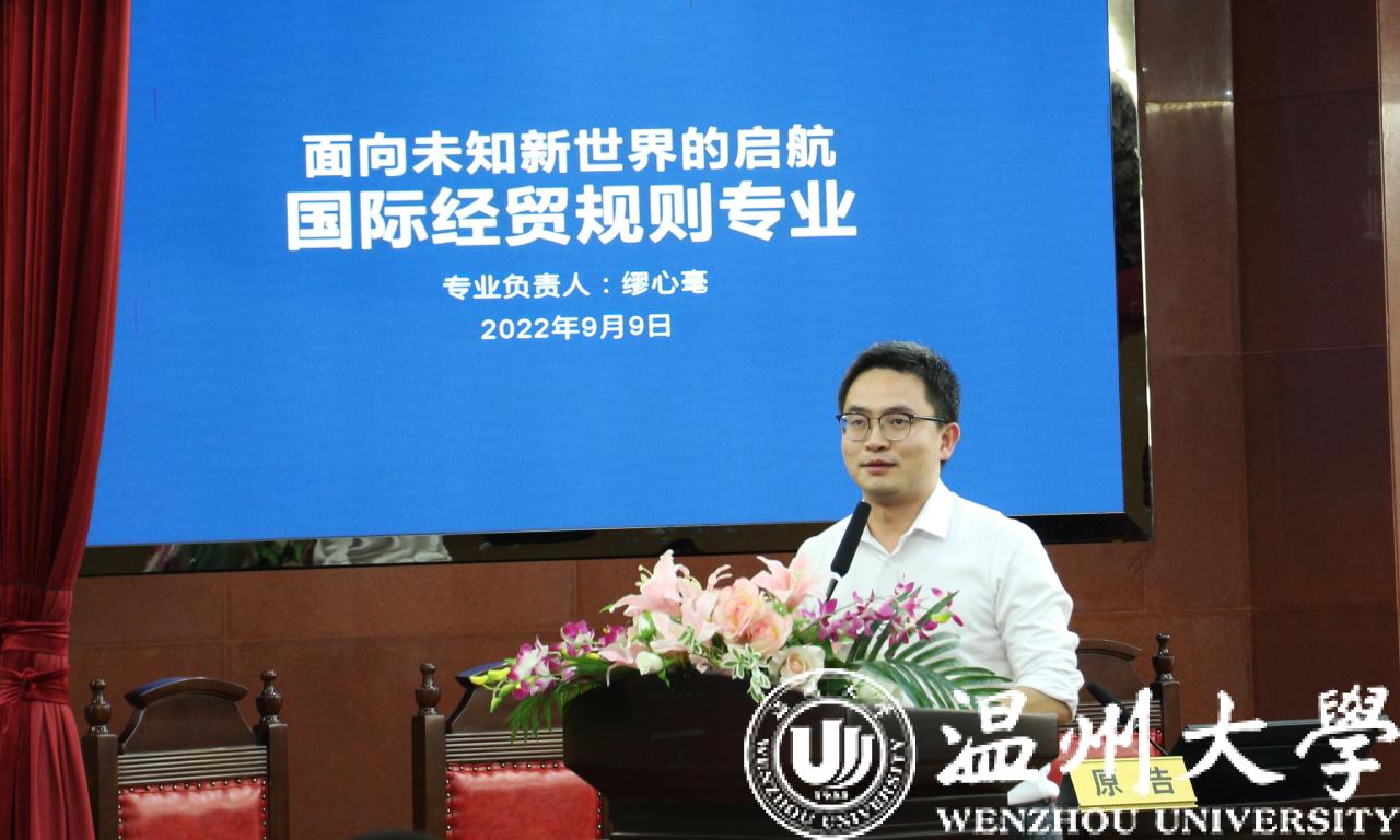 法学与国际经贸规则会场由法学专业负责人李勇军老师主持,副院长周湖勇老师对av天堂 概况、温州法学专家及法律案例、师资和学生概况等几个方面进行介绍;国际经贸规则专业负责人缪心毫老师介绍了国际经贸规则专业的课程设计、学科融合背景以及人才培养目标等内容。