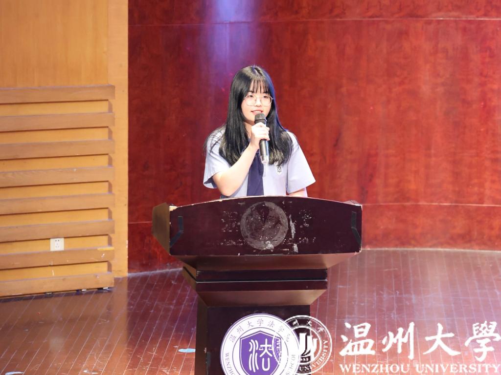 在新生代表发言环节,法学专业新生代表朱怡帆同学阐述了作为一名法学生的使命和职责,充分展现了积极向上的青春风貌;行管专业新生代表刘佳莉同学在发言中以自身经验告诉大家,要在大学中继续努力,为美好未来不断奋斗;国际经贸规则新生代表杨天宇同学则勉励同学们克服困难,保持初心,终身学习;之后,研究生代表金在熔同学强调了不断深入学习的重要性,并表达了对本科新生努力学习,为av天堂 增光添彩的期望;马丹珍同学作为留学生代表表达了对av天堂 的热爱,并提出与大家一同努力,实现梦想的美好愿景。
