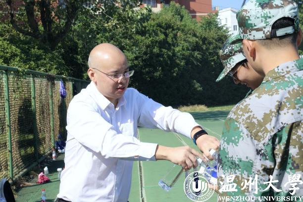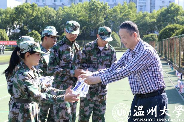 10月13日,av天堂 院长王宗正、党委书记林钦、党委副书记杨振海一行前往北校区足球场,慰问我院军训新生。av天堂 为新生准备了温大定制水和小面包,为炎热的军训场送来了一丝清凉。