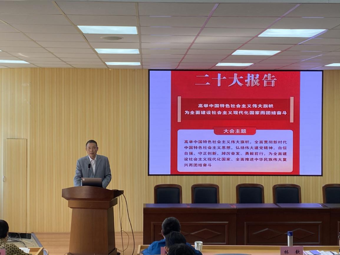党委书记林钦带领全体教师学习习近平总书记在中国共产党第二十次全国代表大会上的报告。这是我国在迈上全面建设社会主义现代化国家新征程、向第二个百年奋斗目标进军的关键时刻召开的一次十分重要的大会,举国关注、举世瞩目。大会对鼓舞和动员全党全军全国各族人民坚持和发展中国特色社会主义、全面建设社会主义现代化国家、全面推进中华民族伟大复兴具有重大意义。全院师生需认真学习大会精神,学深学透,融会贯通,成为我们今后一段时间的指路明灯。
