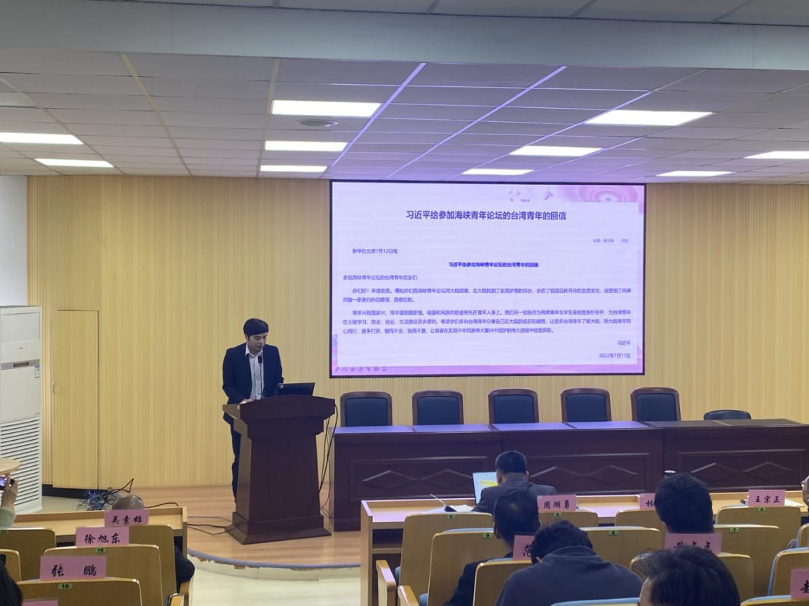 av天堂 教师许晋铭带领全体教师学习了习近平总书记给台湾青年的回信,并分享了参加海峡青年论坛的台湾青年们向习近平总书记写信的过程。他指出,参加海峡青年论坛的台湾青年们的理念与初衷一是扮演爱国进步的先行者;二是力推两岸融合促进民族复兴;三是帮扶新进台青的领头人;四是凝聚台湾青年成为祖国的螺丝钉;五是成为台湾青年普遍利益的传达者。