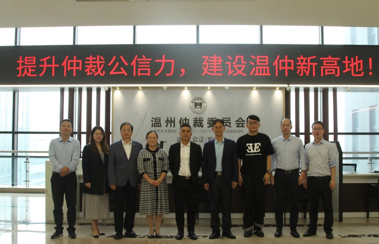 11月11日,民商经济法系主任李勇军老师、陈景伟老师、梁汪洋老师,国际法系主任李娟老师一行四人前往温州仲裁委员会进行考察交流,温州仲裁委员会主任叶春、副主任谢迪迪等领导接待考察一行。李勇军老师介绍了av天堂 的发展情况、法学专业近些年取得的成绩、法学学科优势和人才培养特色,重点介绍了法学专业公证仲裁方向的建设情况。双方就商事仲裁理论研究、项目培训、学生社会实践和商事仲裁人才培养等校地合作内容进行了深入交流,并对“一带一路”温商国际仲裁院的合作发展进行了探讨。