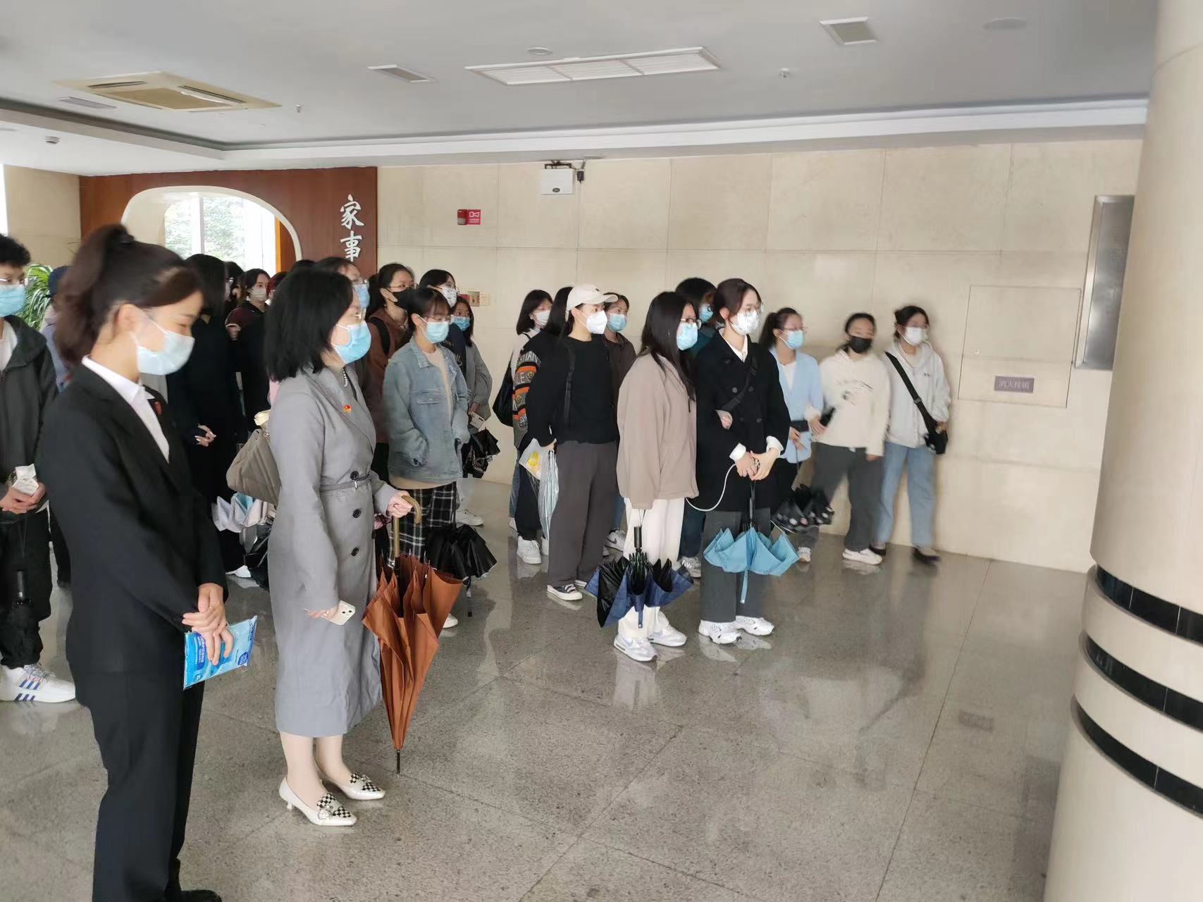 2022年11月25日早上9:00,av天堂 20法学1班的同学们来到温州市瓯海区人民法院进行《职业观察与体验》(二)实践课程的研习。本次活动主要采取线下参与的模式,在av天堂 邱杓丹老师的带领下,20法学1班四十余人参加了此次活动。