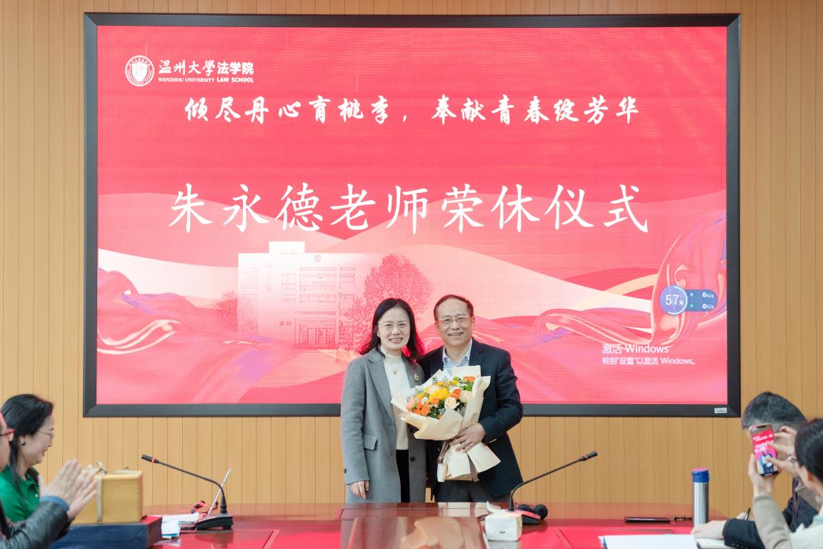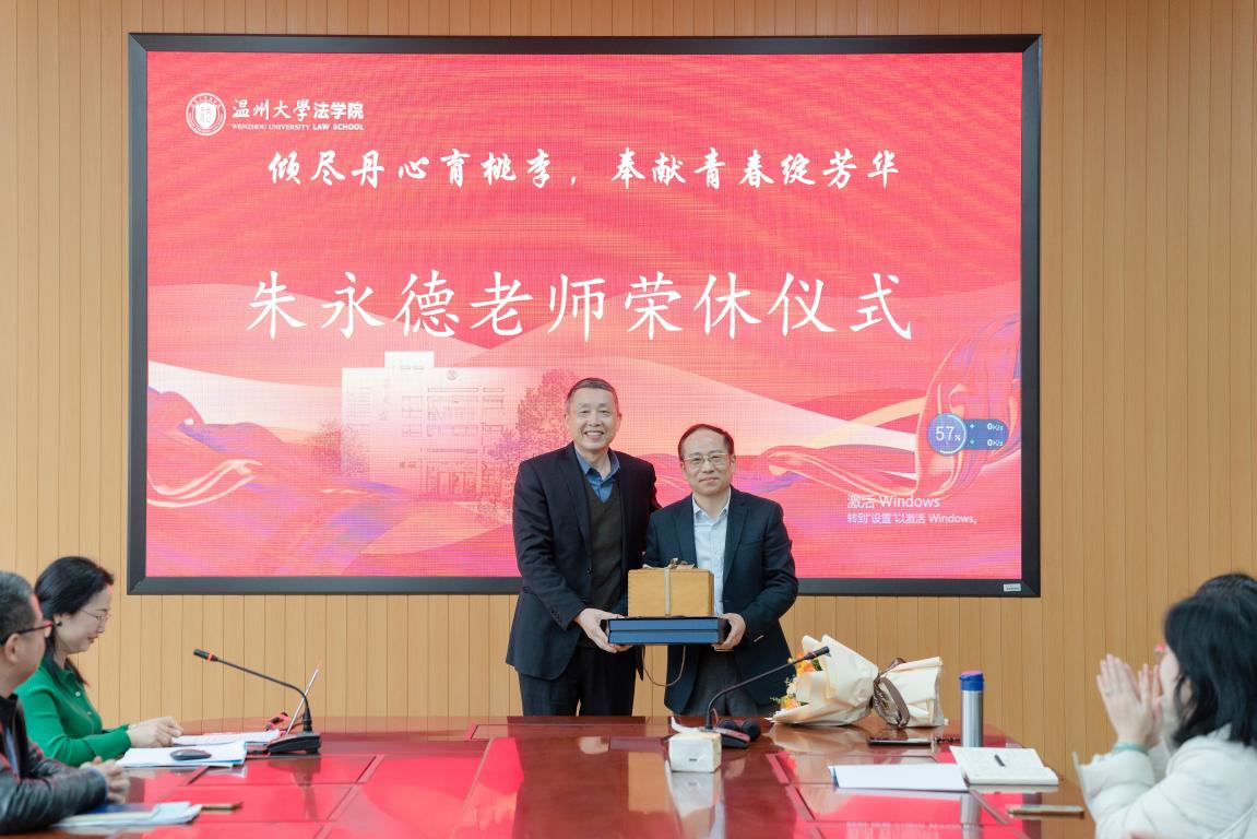 2023年3月3日下午,在这春光明媚、桃李芬芳的季节里,在这喜悦的日子里,av天堂 党委林钦书记携法律系全体老师欢聚一堂,以最真挚的情谊欢送尊敬的朱永德老师光荣退休!