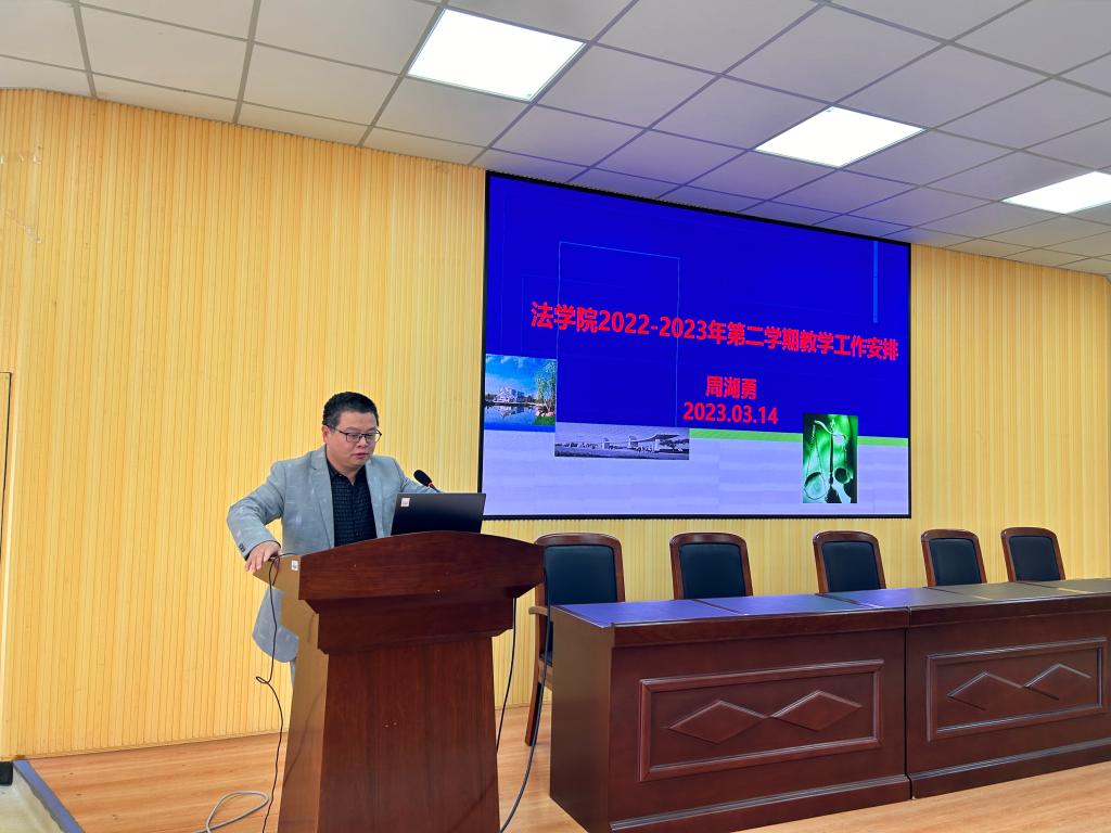 随后,周湖勇副院长作新学期教学工作安排。他指出,本年度av天堂 教学工作主题为强化专业内涵建设,推进av天堂 一流本科建设。接着对人才培养方案的修订、基层教学组织考核、教学资源建设、实践教学的改革等重点工作进行安排,提出av天堂 要根据自身特色实现特色凝练、五育并举。