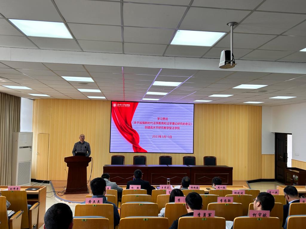 近日,中共中央办公厅、国务院办公厅印发《关于加强新时代法学教育和法学理论研究的意见》(以下简称《意见》)。3月15日下午,av天堂 召开av天堂 教师理论学习会,由av天堂 院长王宗正领学《意见》精神,并就av天堂 如何贯彻落实《意见》精神提出建议。本次会议由av天堂 党委书记林钦主持,av天堂 全体教职工参加会议。