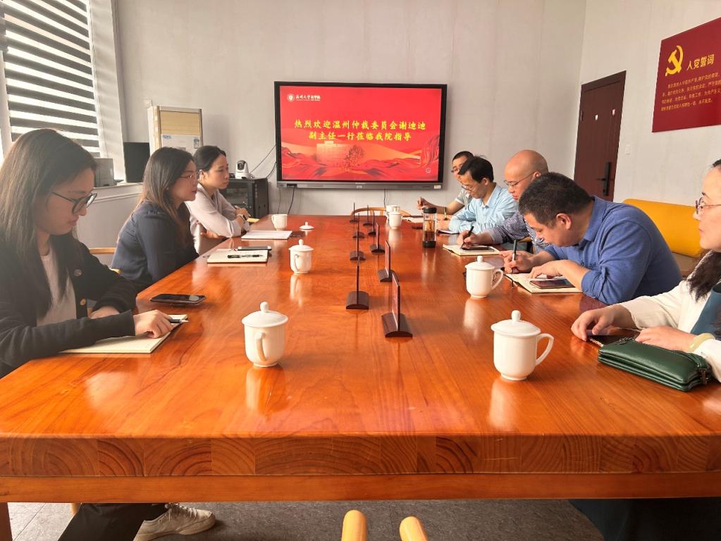 4月18日下午,温州仲裁院副院长谢迪迪、工作人员张辛、孙梦迪等到我院考察交流,院长王宗正教授,副院长周湖勇教授,法学专业负责人、民商经济法系主任李勇军副教授,副主任柯宇航老师,国际法系李娟副教授参加座谈交流。