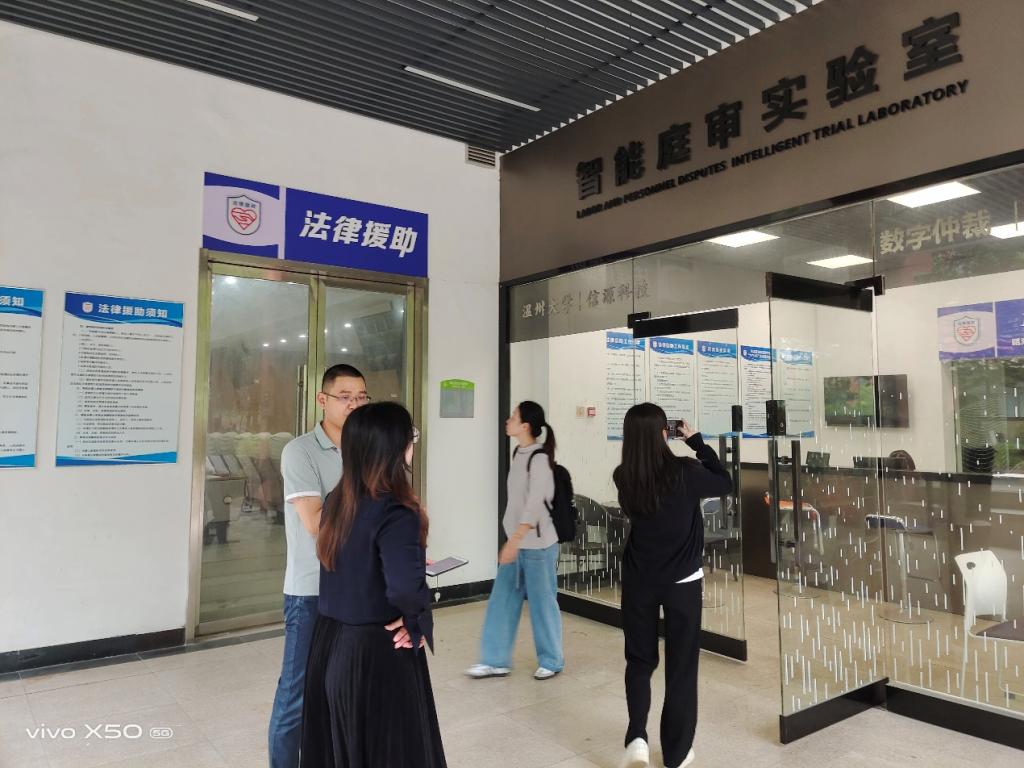 座谈会后,考察一行还参观了入驻我院的瓯海区劳动人事争议仲裁委员会高教园区派出庭和瓯海区公共法律服务12348热线,并对模拟法庭建设与使用进行了交流。