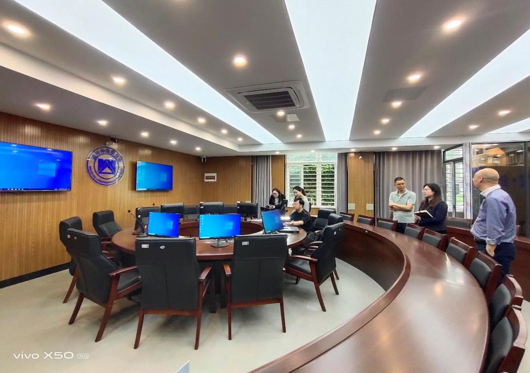 考察一行先参观了我院承接的温商国际仲裁院,王宗正院长介绍了仲裁院的建设情况和发展规划,柯宇航老师现场展示了仲裁院设施设备的运行情况。