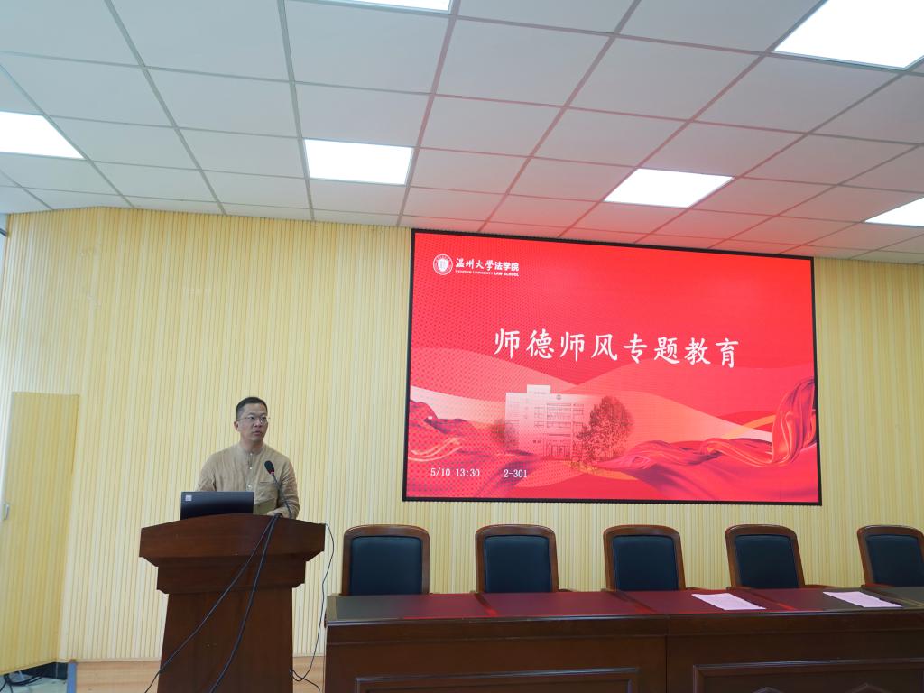 林钦从目标任务、整治原则、整治重点、总体安排四个方面为全体教师解读了《av天堂 师德师风问题专项整治工作实施方案》,并重点就政治纪律、廉洁从教、生活纪律、学生权益、法律法规、学术诚信、失管失责七个整治重点进行详细说明,提醒教师要以赤诚之心、奉献之心、仁爱之心投身教育事业,争做“四有”“六模范”好老师。