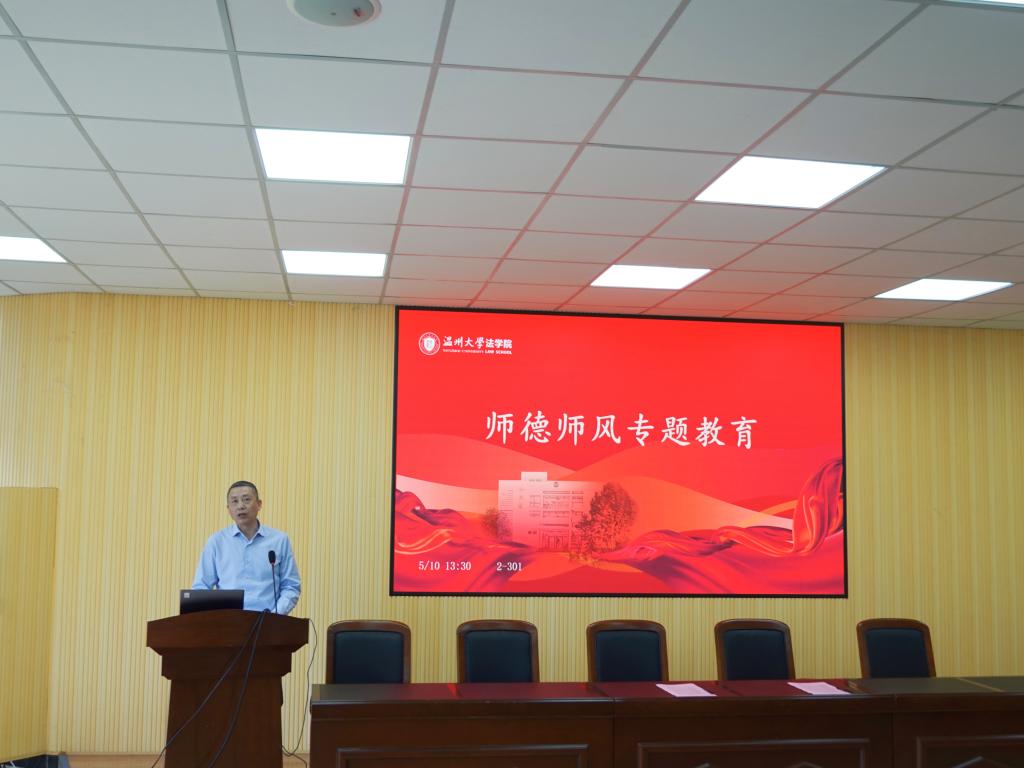 av天堂 党委副书记杨振海作师德师风典型案例警示教育。他以“多次发表错误言论,严重违反党的政治纪律和政治规矩”“违反学生权益,师生发生不正当关系”“违反学术诚信,学术不端”三个典型案例警示各位教师要注意师德师风建设,引导教师执着于教书育人,有热爱教育的定力、淡泊名利的坚守。