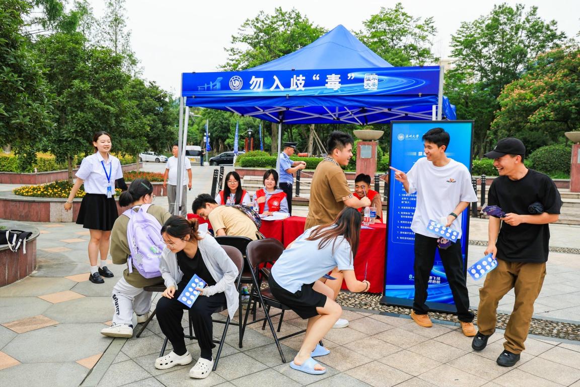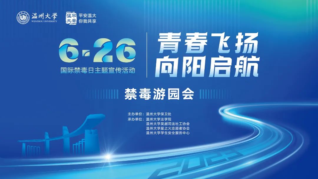 为全面营造全民禁毒宣传月活动氛围,助推温州市“全国禁毒示范城市”创建工作,进一步增强在校学生识毒、防毒、拒毒、禁毒意识,在第36个“6·26”国际禁毒日来临之际,av天堂 保卫处联合av天堂 开展“青春飞扬,向阳启航”——禁毒主题游园会,活动吸引了温州各大高校学生广泛参与。