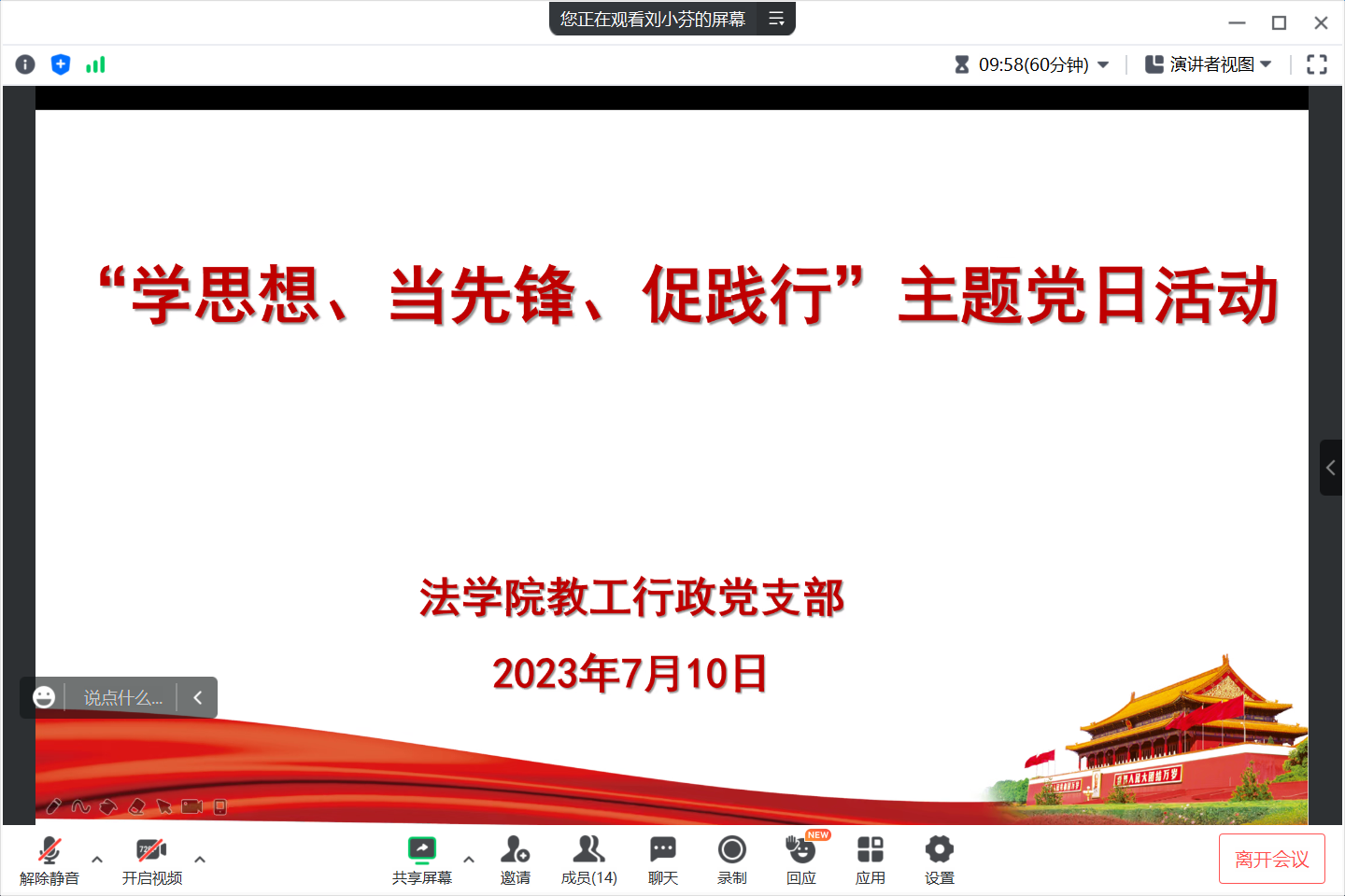 7月10日下午,av天堂 教工行政党支部通过腾讯会议开展“学思想、当先锋、促践行”主题党日活动。av天堂 党委书记林钦以《习近平新时代中国特色社会主义思想的世界观、方法论和贯穿其中的立场观点方法》为题做主题发言。