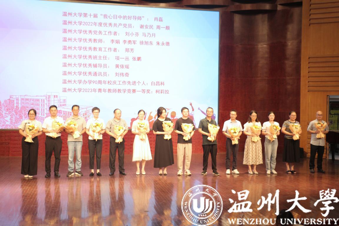 学生代表向老师献花。回顾过去的一学年,av天堂 落实立德树人根本任务,践行五育并举,取得了令人满意的成绩。这个成绩离不开全体教职工的辛勤努力!av天堂 学生向优秀教师献上鲜花,表示感恩之情。舞台上鲜花簇拥教师,迎新现场氛围一片热烈。