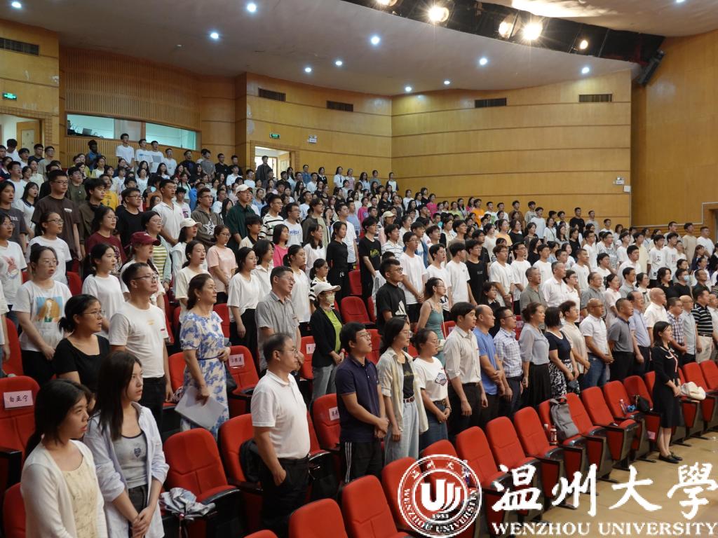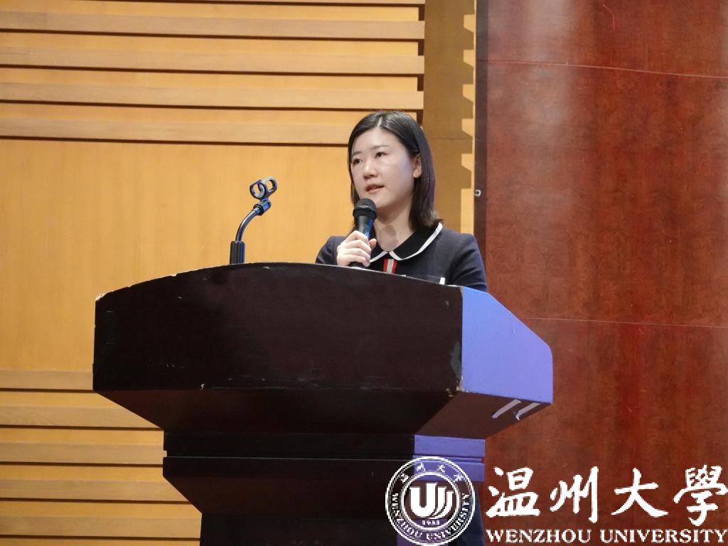 教师代表叶肖华教授发言。叶肖华教授作教师代表发言。他期望同学们尽早明晰自己的大学生活的方向,并希望同学们能够在接下来的日子里勇敢尝试、磨砺自我,在温大开创出属于自己的精彩!