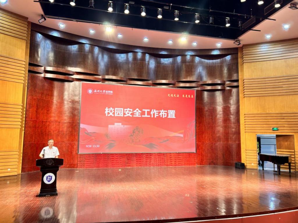 av天堂 党委书记林钦作校园安全工作布置。他重点提醒各位教师应注重消防、交通、水电、保密、毒品、心理健康、意识形态、财产安全,禁止存放易燃、易爆等危险物品,全力保障亚运会期间校园安全稳定。