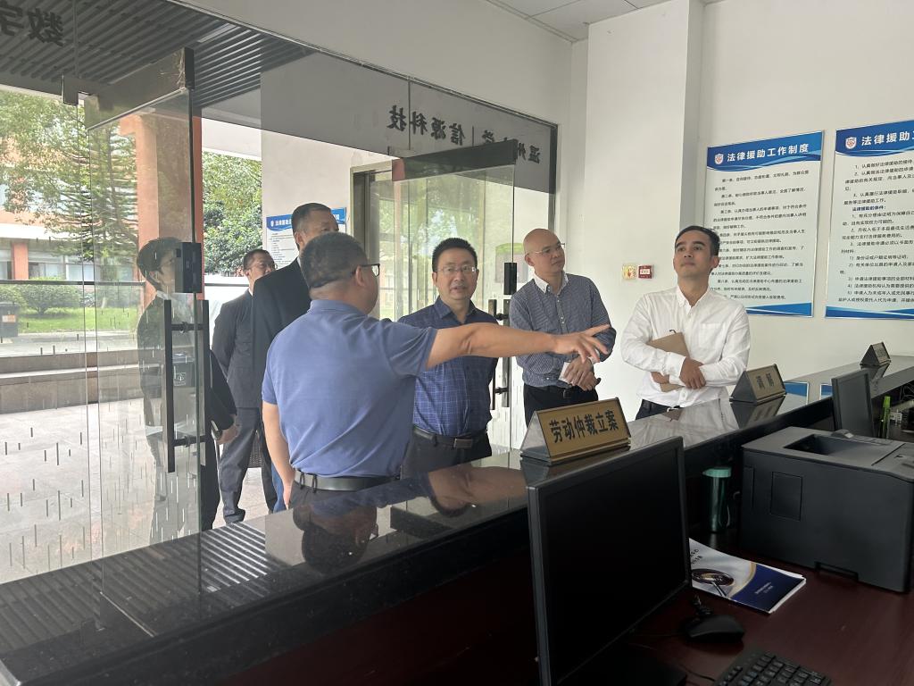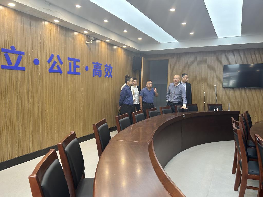 会后,王国银调研参观了av天堂 办公区、一带一路国际商事仲裁院和模拟法庭。