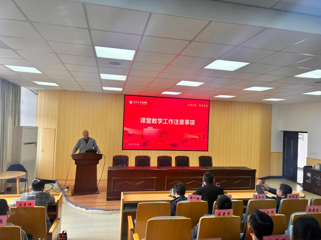 院长王宗正作课堂教学工作注意事项提示。第一,新教师要严格按照学校要求做好课堂教学工作;第二,教师应当保证课堂教学基本纪律,严禁随意调停课;第三,教师应当遵守课堂教学基本规范,注重意识形态相关要求,不得在课堂上发表不当言论。