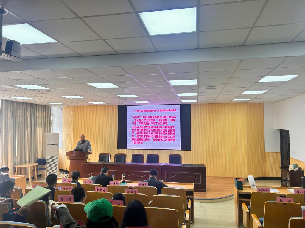 院长王宗正以《学习贯彻习近平法治思想培养德法兼修的法治人才》为题为全体教师上党课。他从习近平法治思想是新时代法学教育的根本遵循;中办、国办“意见”是加强新时代法学教育和法学理论研究的纲领性文献;贯彻“意见”精神培养德法兼修的法治人才三个方面为全体教师解读了习近平法治思想在新时代法学教育的纲领性作用。他指出,我们要全面贯彻习近平法治思想,贯彻《关于加强新时代法学教育和法学理论研究的意见》,全面推进习近平法治思想“三进”,一体推进法学专业理论教学课程和实践教学课程建设,坚持特色发展提升学科专业水平,坚持“四有”标准强化师资队伍建设。