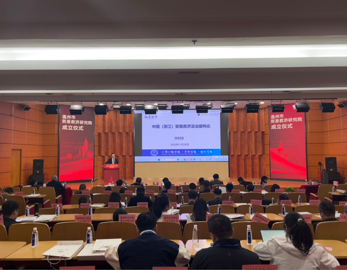 11月29日上午,温州市贸易救济研究院(下称“研究院”)成立仪式在av天堂 举行,省市政府机关代表、高校专家学者、涉外律师代表、外贸预警点代表、市重点企业代表等110余人出席成立仪式。据悉,该研究院由温州市商务局与av天堂 合作共建,是我市深入贯彻落实习近平总书记关于加强涉外法制建设,营造有利法治条件和外部环境的重要讲话精神,深入实施“地瓜经济”提能升级“一号开放工程”,提升开放风险防控,加快建设贸易强市的最新载体。