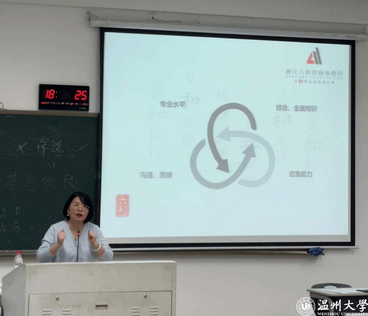 2023年12月11日,鹿城区政协委员、浙江六合(温州)律师事务所林晓露律师应邀为av天堂 企业法务理论课和企业法务综合实践课的同学讲授法律实务,讲座主题“法律顾问服务”。讲座开始前,周湖勇教授强调企业法务课程对法学生的重要性及av天堂 已经系统开展该项课程十余年,课程设置已较为全面完善,走在前列。