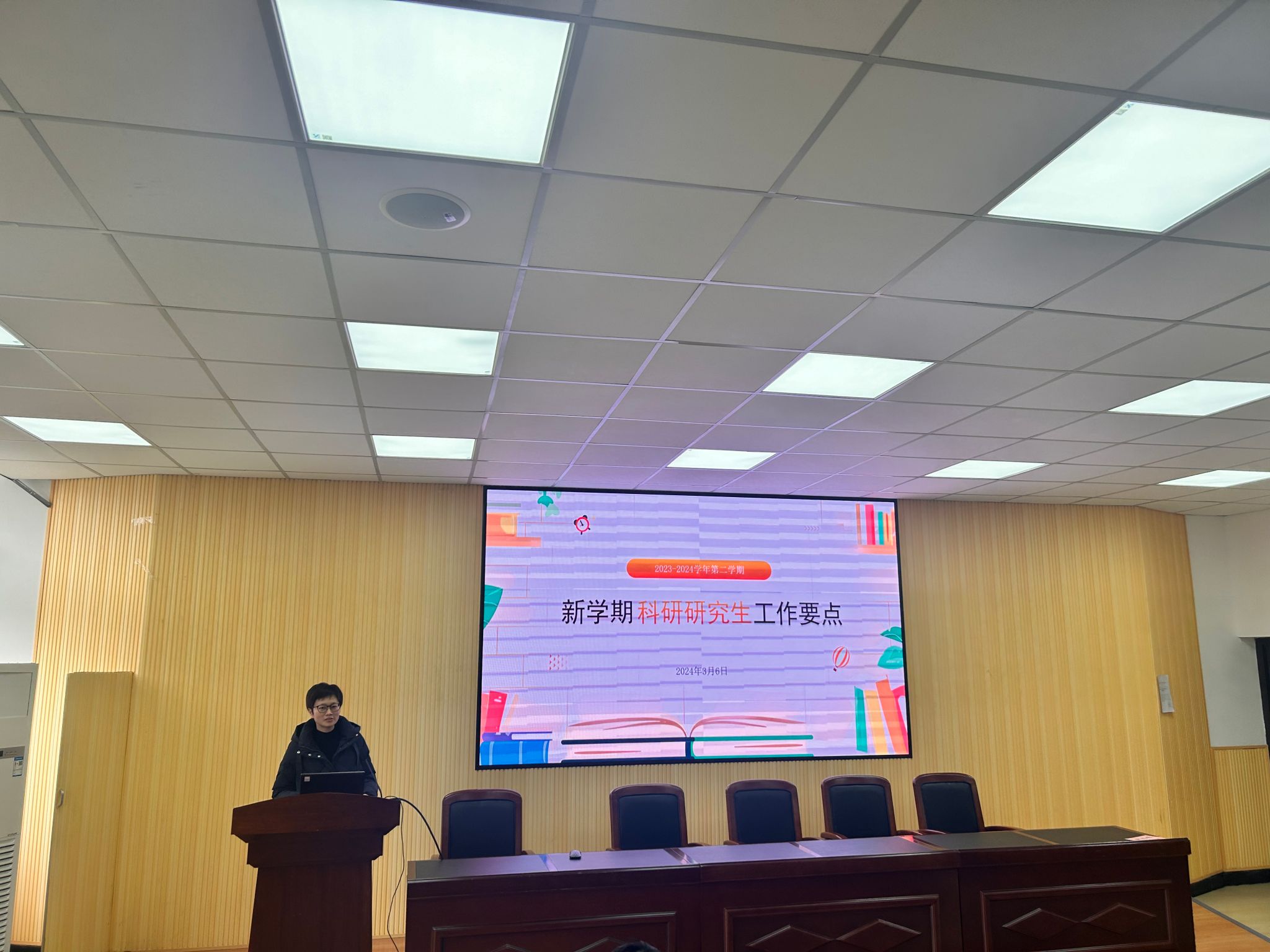 av天堂 副院长周一颜从科研、研究生招生、研究生教育三个方面做新学期科研研究生工作要点说明。她指出,2023年av天堂 总体上在科研方面取得了重大丰收,2024年要继续做好有组织的科研工作,同时要做好研究生招生、毕业论文指导、专业实习等工作。