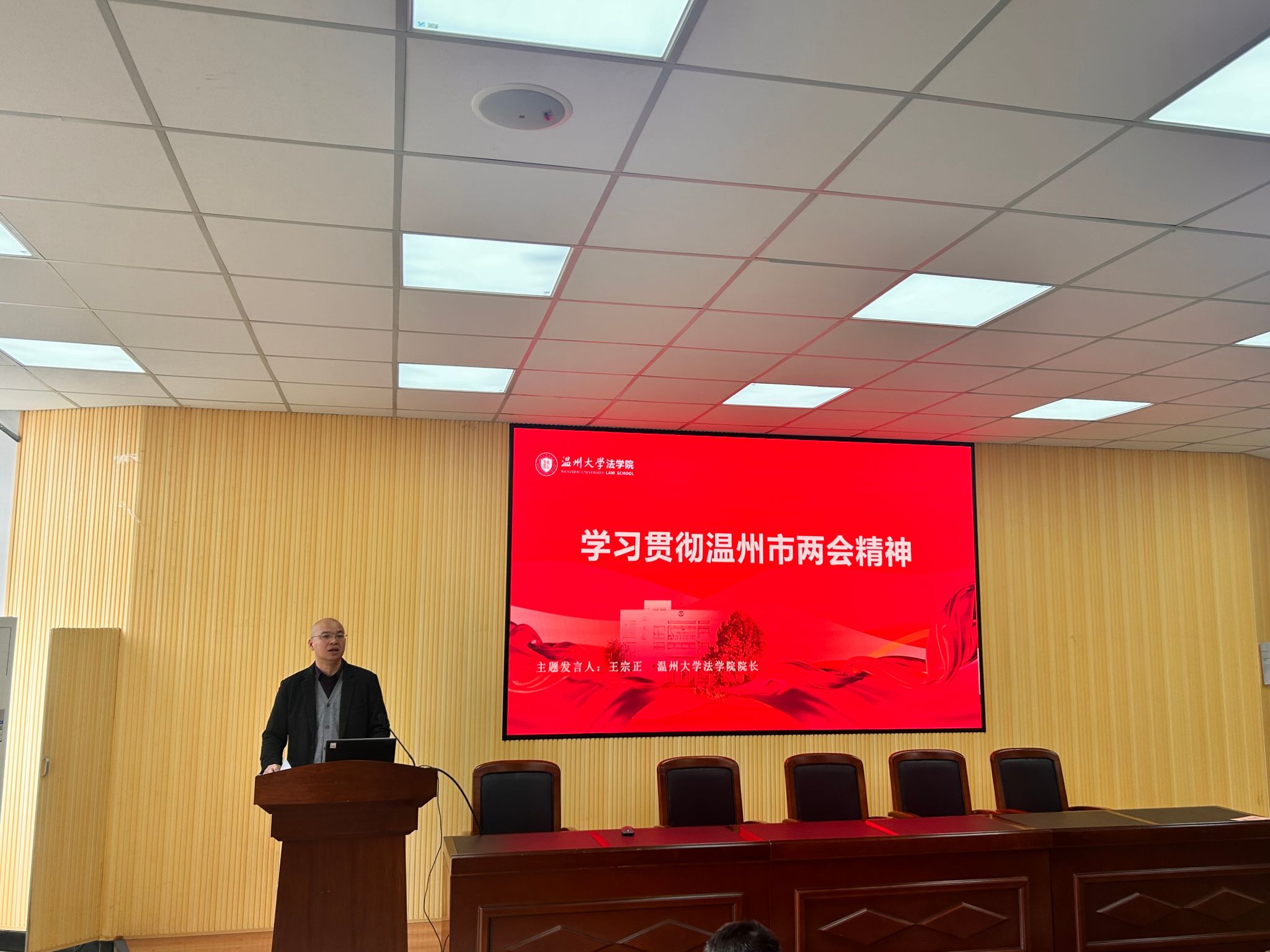 会上,av天堂 院长王宗正带领全体教师学习了温州市两会精神。他指出,要充分发挥立法研究院专家库和基层立法联系点的作用,发挥地方av天堂 作用,做好地方服务,贯彻落实温州市两会精神和av天堂 2024春季新学期教职工大会上的校领导讲话精神。