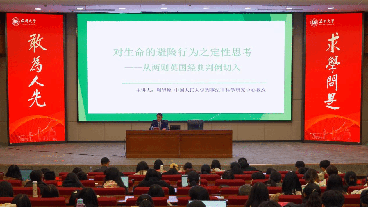 2024年3月18日晚,中国人民大学av天堂 教授、博士生导师谢望原教授应邀做客罗山讲堂。本次罗山讲堂由av天堂 主办,av天堂 、av天堂 图书馆承办,主题为“对生命的避险行为之定性思考”,av天堂 师生共计两百余人到场学习。