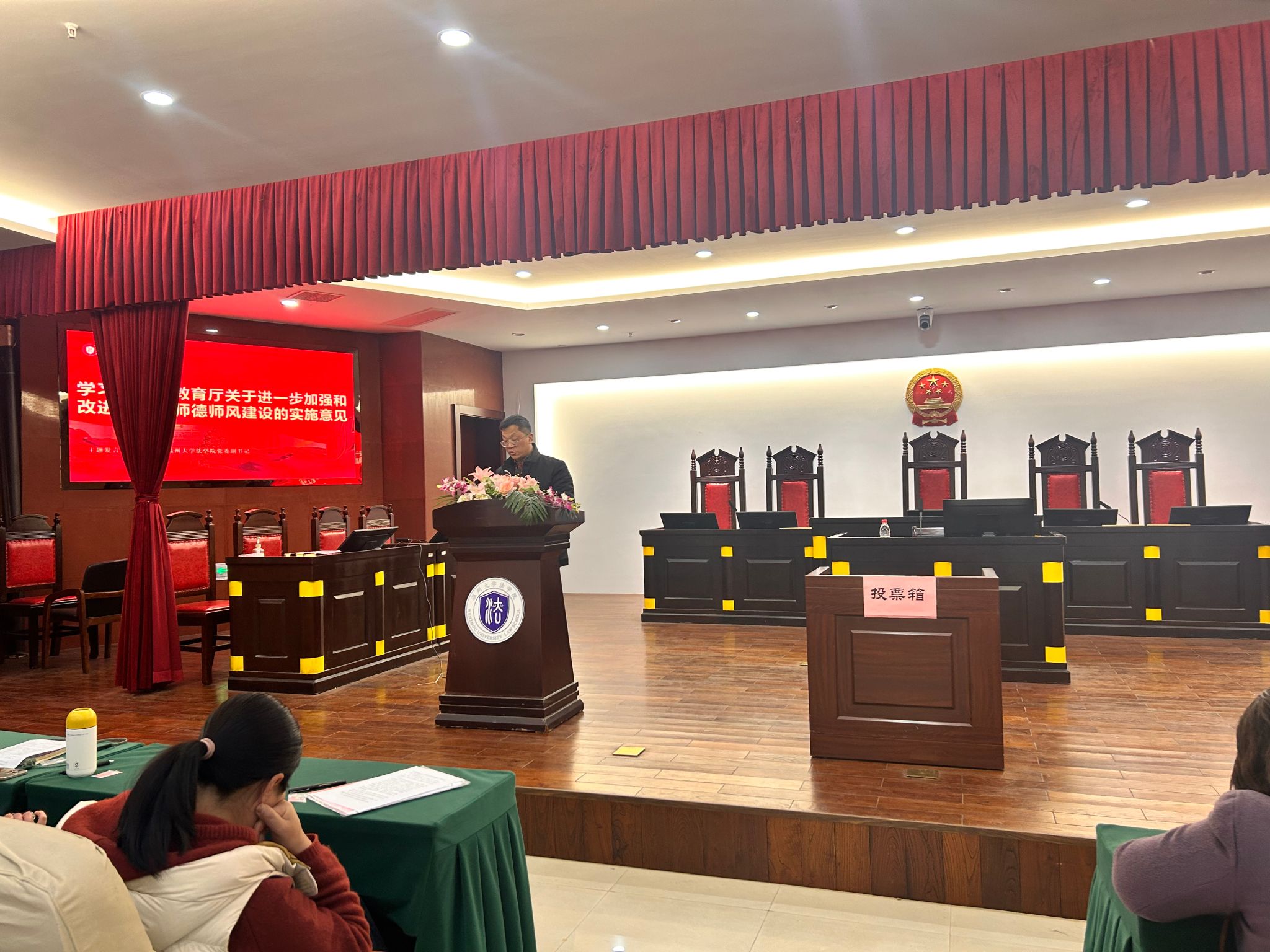 2024年3月20日,av天堂 在北校区8号楼模拟法庭召开av天堂 教师政治理论学习会,会议由av天堂 党委书记林钦主持,全体教职工参加会议。