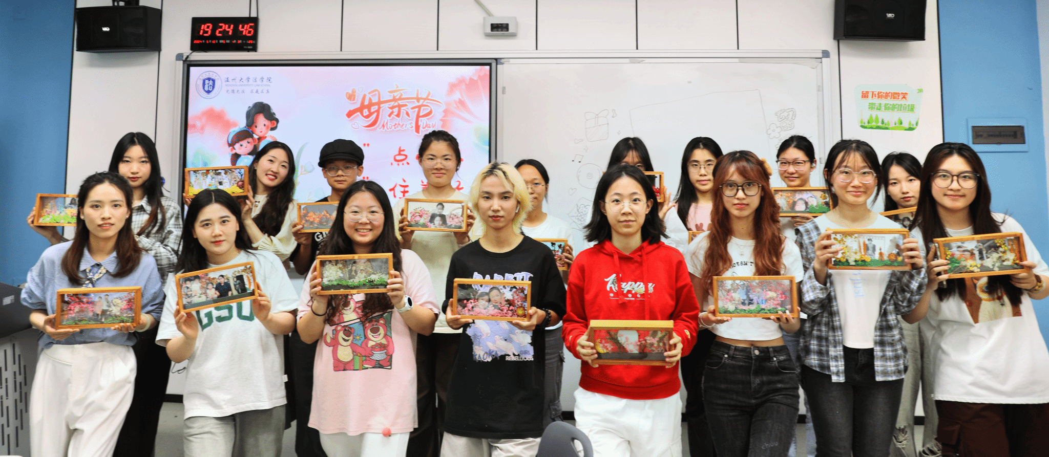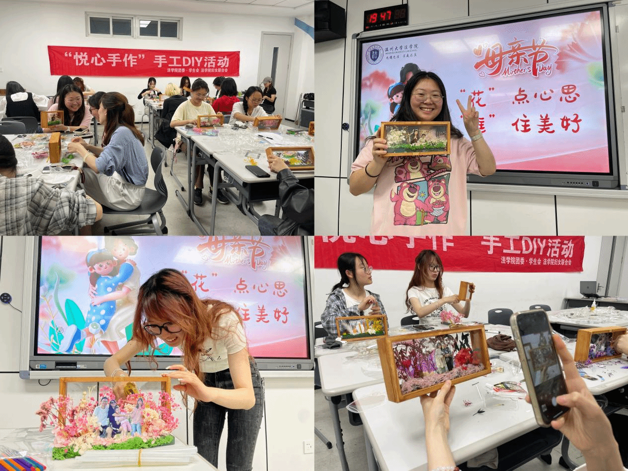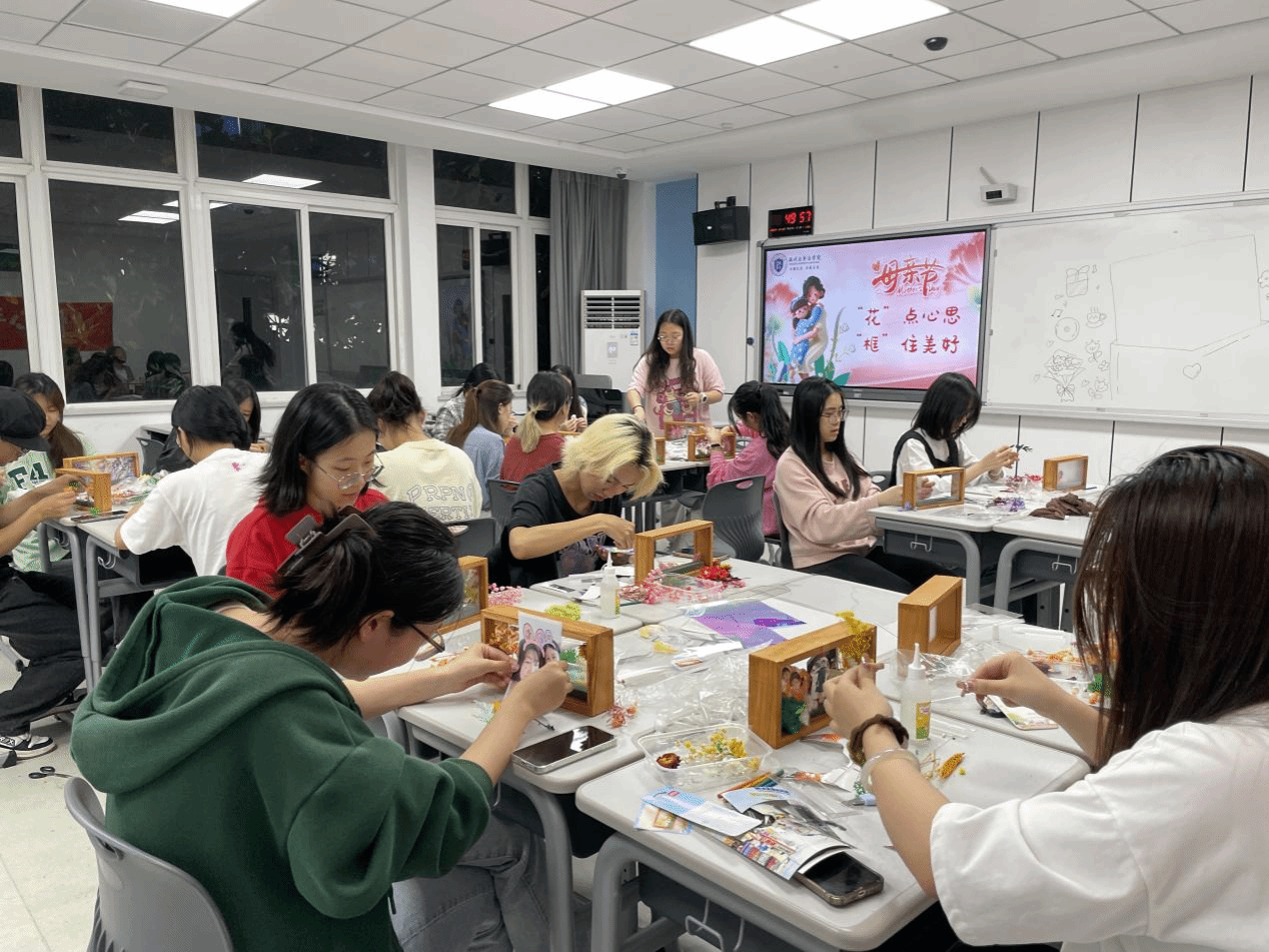 五月浅夏,岁月安然。这是一个深情的季节,所有与爱有关的事物都在发芽。母亲节,亦在这温暖的月份里欣然而至。2024年母亲节来临之际,av天堂 开展了“‘花’点心思,‘框’住美好”DIY活动。伴着悠扬的乐曲,同学们纷纷拿起面前的材料进行创作。