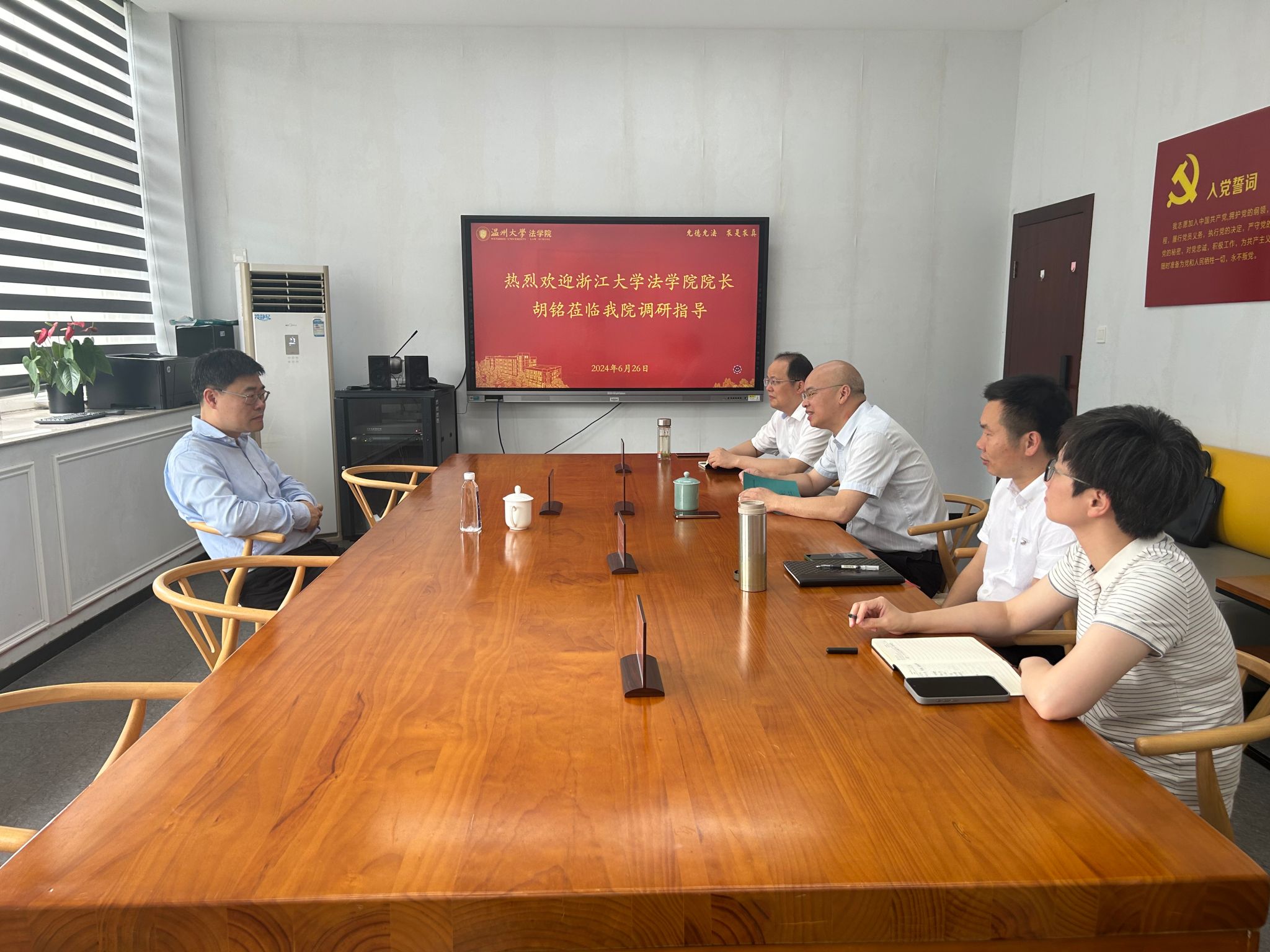 6月26日上午,浙江大学光华av天堂 院长兼党委副书记胡铭教授莅临我院调研指导,院长王宗正、党委书记周敬业、副院长叶肖华和副院长周一颜出席座谈会。