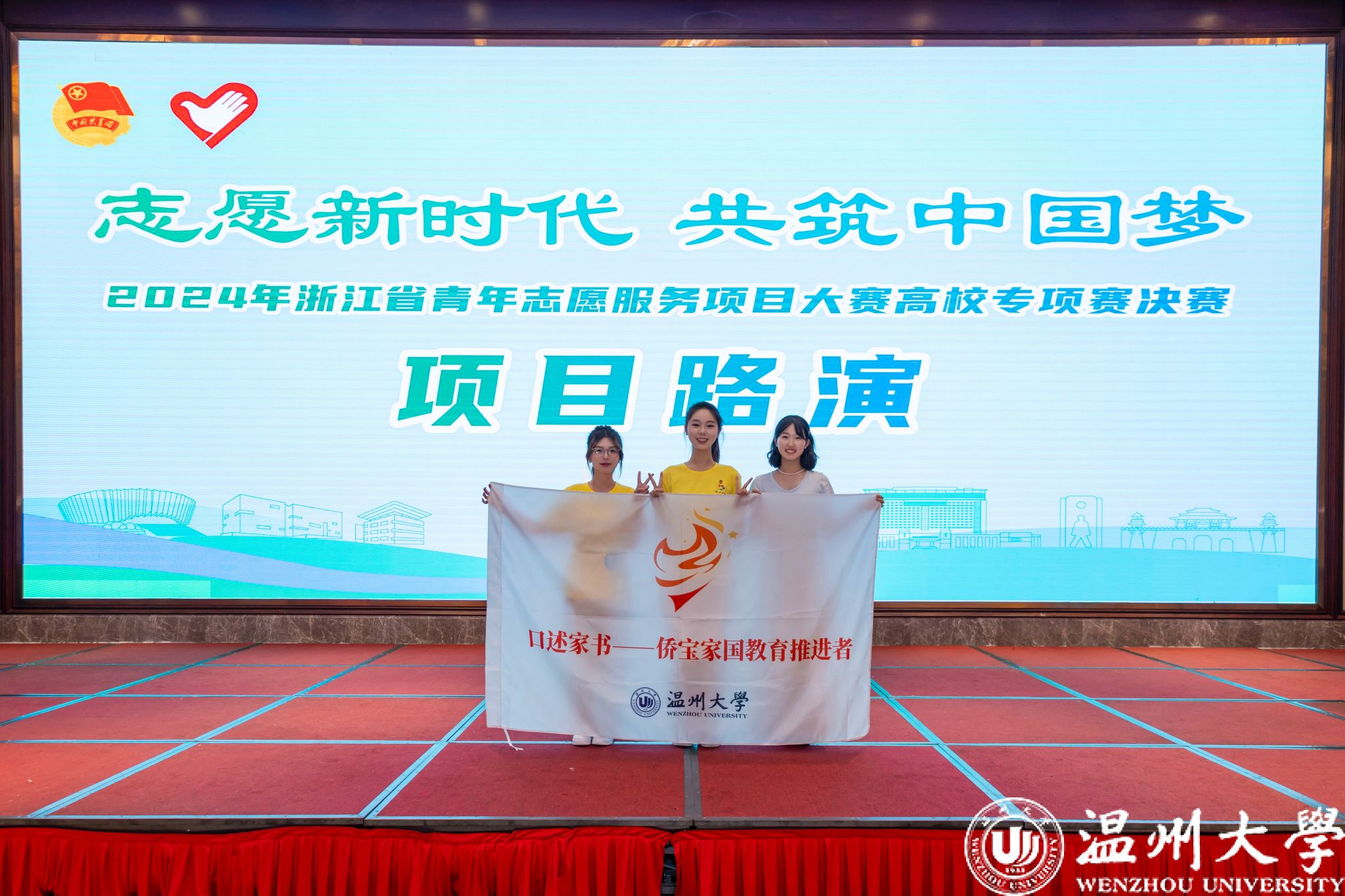 7月5日至7日,由共青团浙江省委、浙江省志愿者协会主办,共青团金华市委、浙江省团校承办,共青团东阳市委协办的2024年浙江省青年志愿服务项目大赛暨青年志愿服务公益创业浙江选拔赛决赛圆满落幕。本次大赛以“志愿新时代 共筑中国梦”为主题,深入贯彻落实党的二十大和二十届二中全会精神和习近平总书记关于志愿服务系列重要指示精神,大力挖掘、培育、推广优秀青年志愿服务项目。我院《口述家书——侨宝家国教育推进者》项目代表av天堂 参赛,经过激烈角逐,最终以全省第一的成绩斩获高校专项赛金奖。