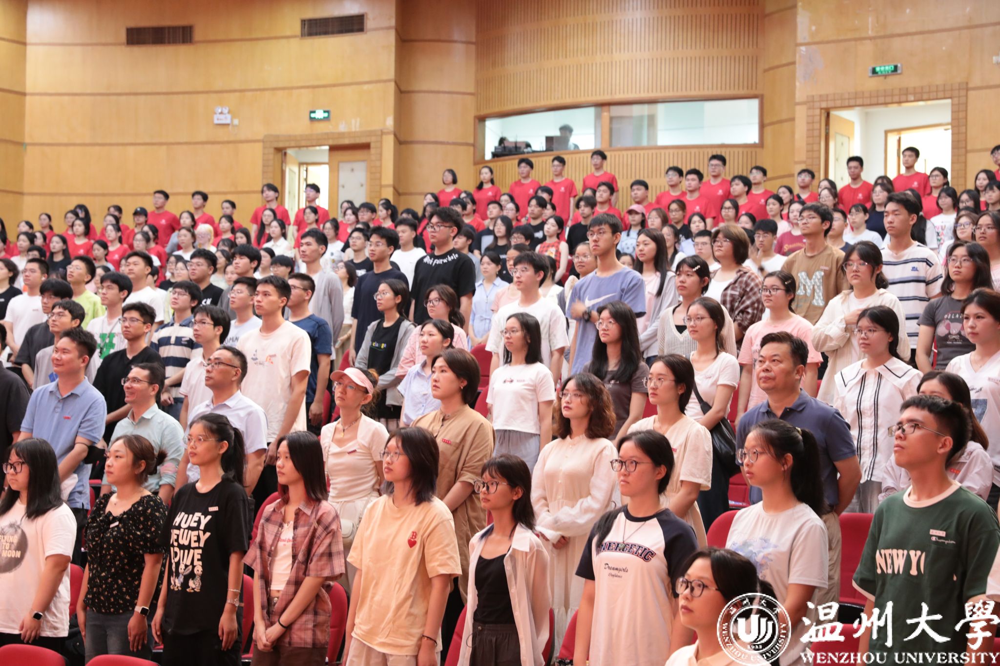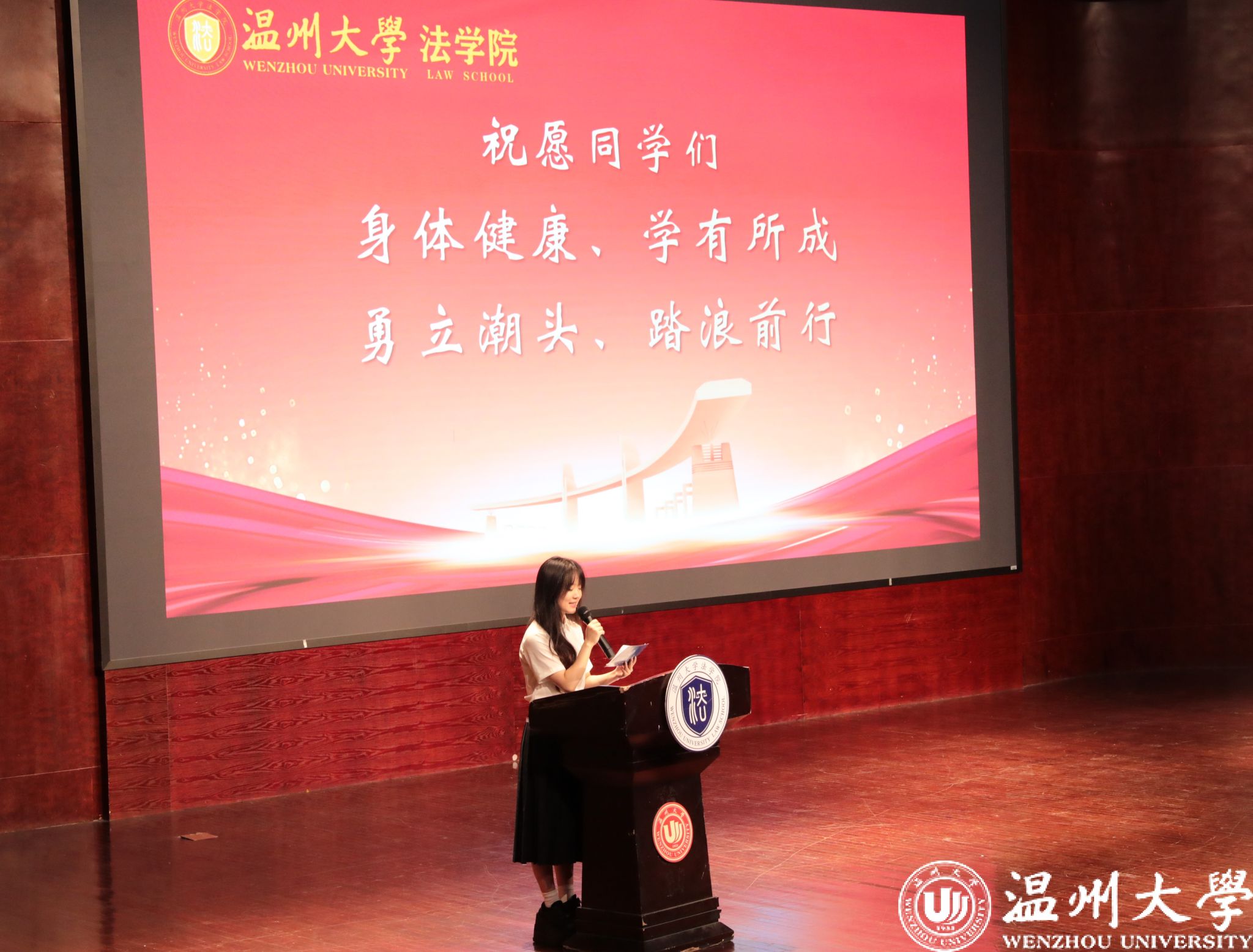 本科新生代表吴文熙分享了自己初到温大的感受,表达了对专业学习的热情、对大学生活的向往与憧憬以及立志成才的决心,也倡议同学们专注研习学科知识,注重自身全面发展,在迎接挑战的同时,收获细碎璀璨的成长和与未来切磋的勇气。