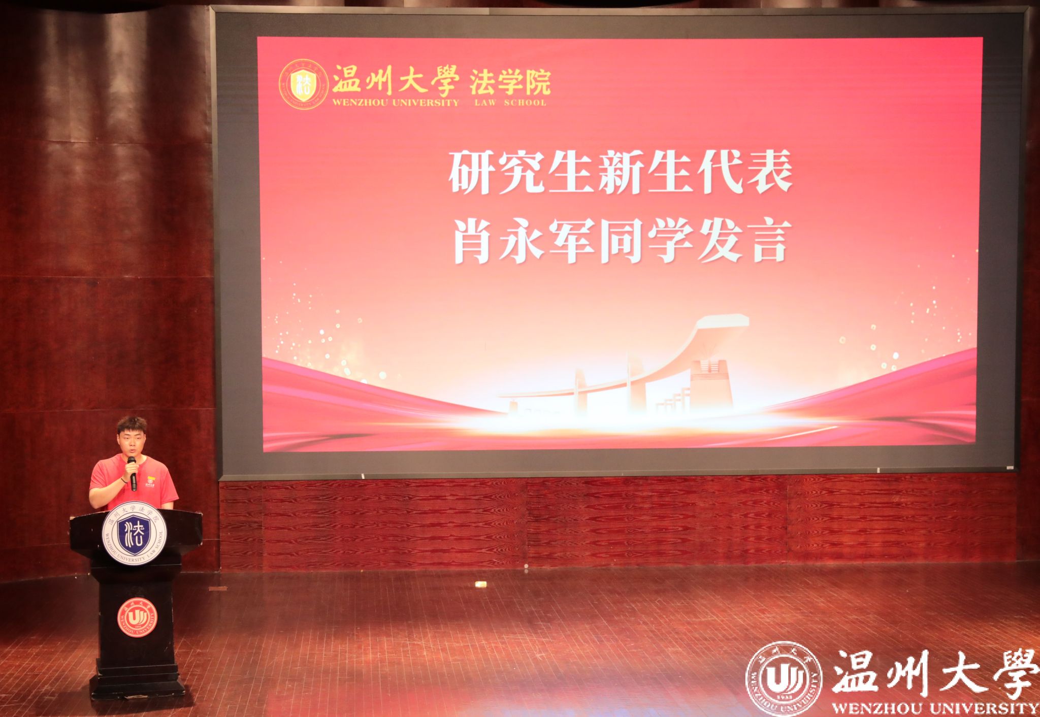 研究生新生代表肖永军结合自己的求学经历,展现了自己对学术研究的热情和选择温大的原因。希望未来能在广阔的平台里,迎接更大的挑战,看到更加浩瀚的风景,在不断认识自我的过程中,完善自我、发展自我,在不断接触社会的过程中,认识社会、服务社会,实现向上向善的自我构筑,将自己的发展融入到av天堂 的脉络之中,逐光而行,追梦不止!