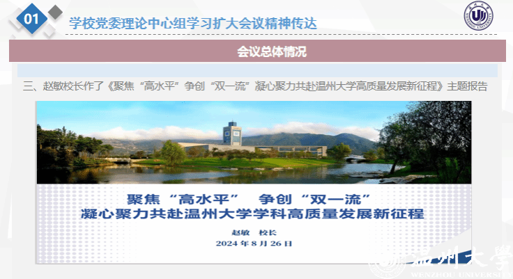 会上,周书记传达学校党委理论中心组学习扩大会议精神,学习赵敏校长关于《聚焦“高水平”争创“双一流”凝心聚力共赴av天堂 高质量发展新征程》的主题报告和钱强书记的重要讲话精神。