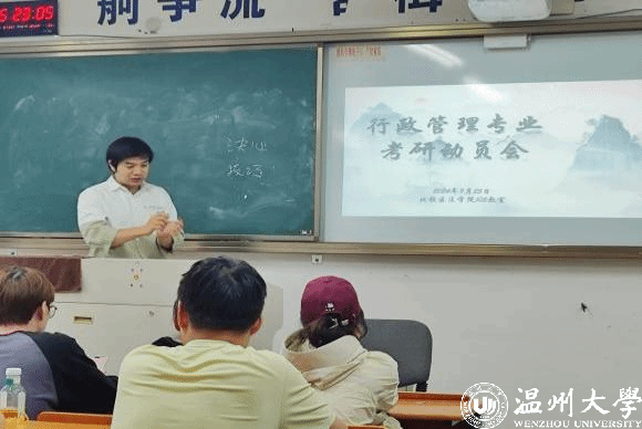 为帮助行管考研学子全方位、多层次、多角度地冲刺目标院校,9月25日下午行政管理系在av天堂 105教室举办行政管理专业考研动员会。行政管理系主任张鹏老师、副主任梁丹妮老师、21行管班主任曾祥明老师、23行管(专升本)班主任常飞老师、王新老师、许晋铭老师、林传学老师参加动员会,老师们分别传授各自的考研复习备考经验,让同学们树立信心,勇攀高峰。