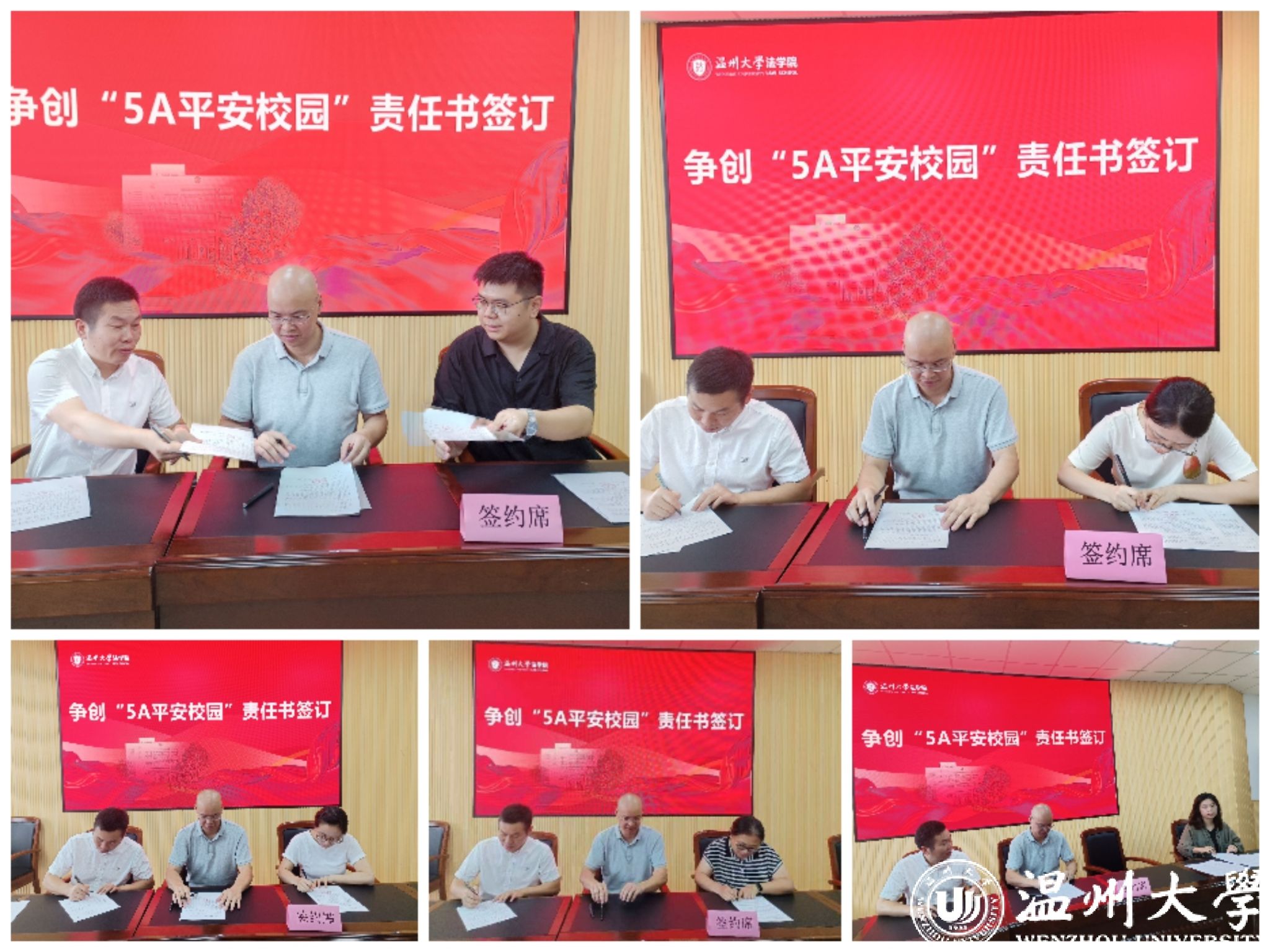 为确保安全管理职责落到实处,王宗正院长、周敬业书记与各科长、实践教学中心负责人签订了争创“5A平安校园”责任书。