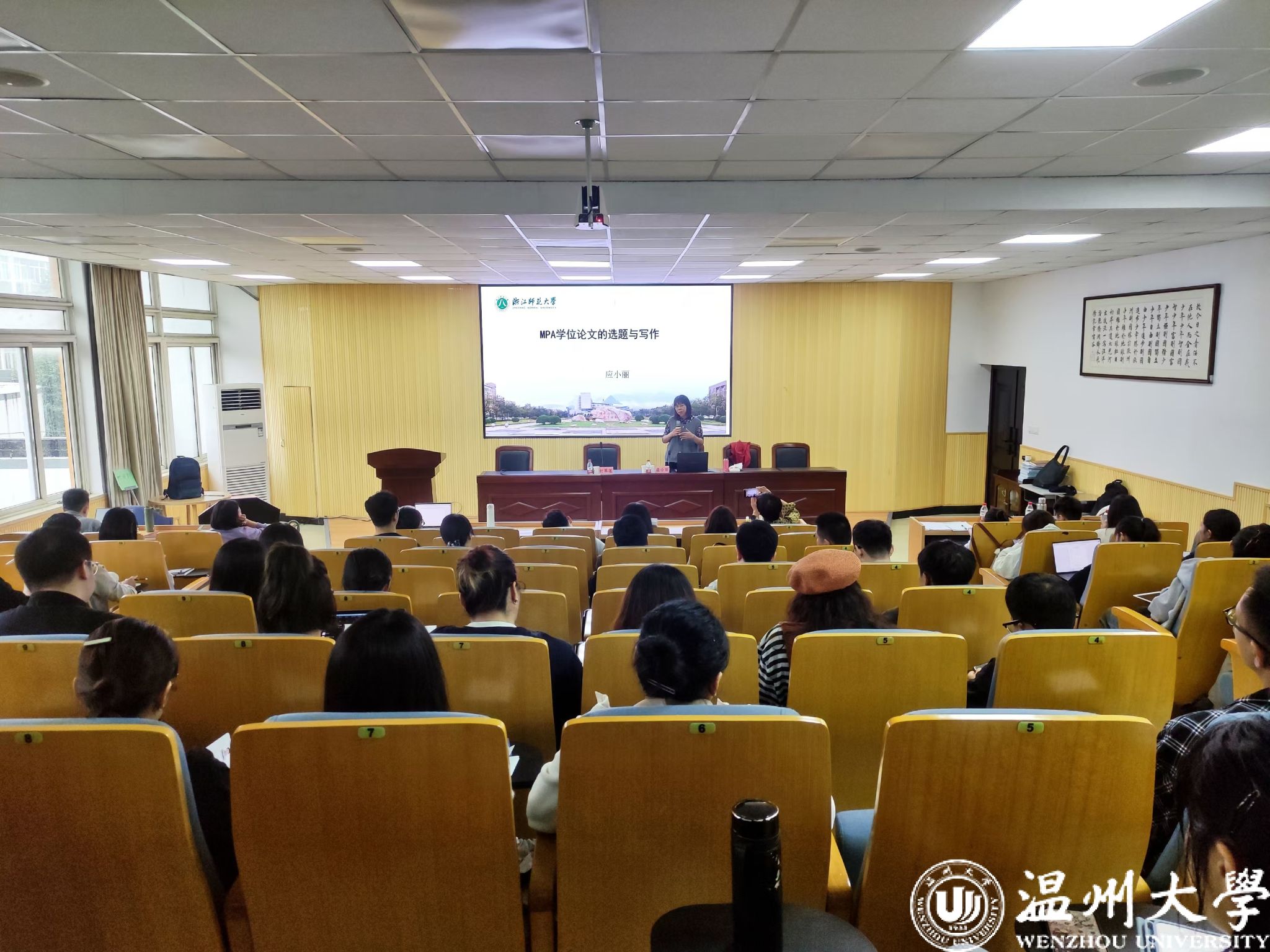 10月26号上午,浙江师范大学教授、硕士生导师,浙江师范大学公共管理学一级学科负责人,浙江省公共管理学会副会长、浙江省中青年学科带头人应小丽教授在av天堂 301会议室为我院师生带来题为《MPA学位论文的选题与写作》的讲座。av天堂 MPA学位点负责人付翠莲教授主持讲座,av天堂 教师和MPA专业学生八十余人到场学习。