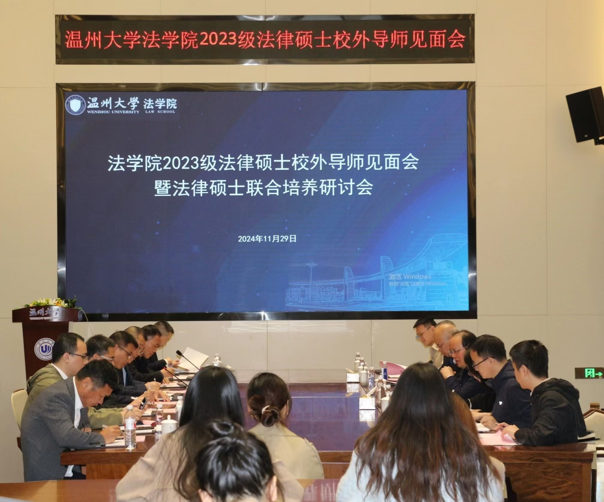 11月29日下午,av天堂 在科综楼305学术报告厅召开2023级法律硕士校外导师见面会暨法律硕士联合培养研讨会。会议由av天堂 副院长叶肖华主持,来自温州市两级法院、检察院及律师事务所的法律实务专家受邀莅临会议,av天堂 院长王宗正、法律硕士学位点负责人吴光升、实习基地负责人谢丽珍、周浩仁、李京普等老师出席,2023级全体法律硕士研究生参加了本次见面会。