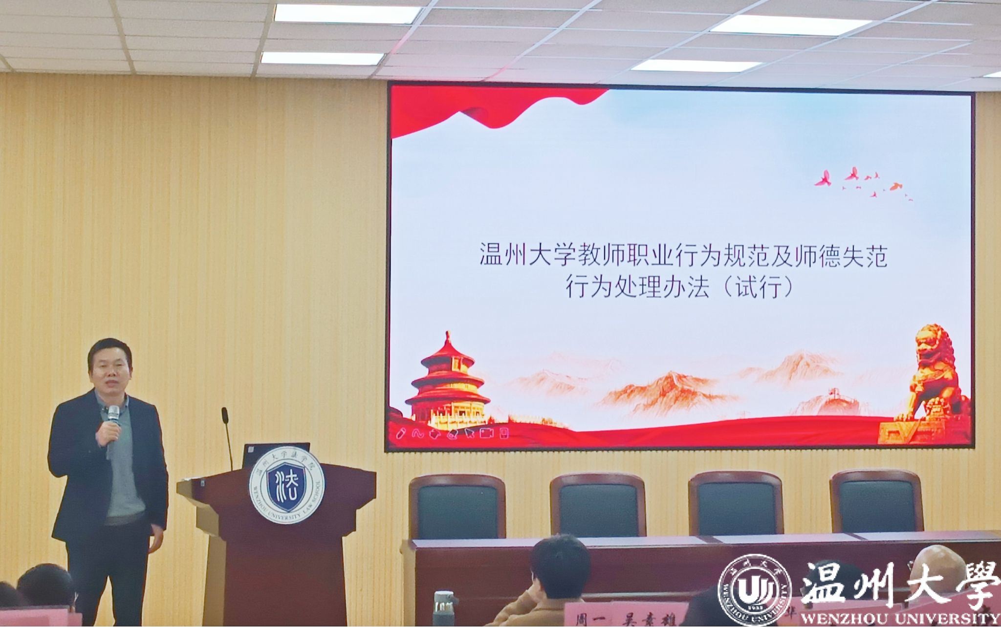 会议伊始,周书记带领全体教职员工认认真真学习《av天堂 教师职业行为规范及师德失范行为处理办法(试行)》文件内容。同时,结合近期发生事例,他强调要求全体教师要将职业行为规范牢记心里,增强意识,深刻认识师德师风的重要性;要时刻敲响师德师风警钟,严格遵守教师职业所要求的行为标准和规范。