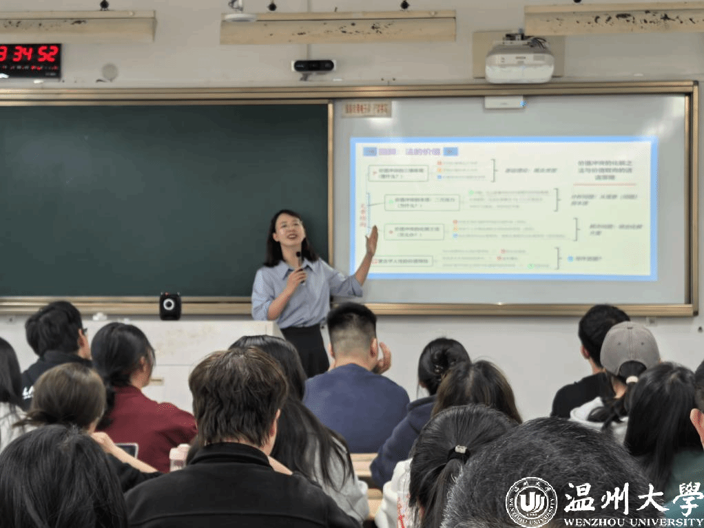郭秉贵老师主讲《法理学(二)》课程中的“中国社会主义立法和法律体系”章节。她以法的价值探讨为切入点,详细讲授了中国社会主义立法的概述、原则、体制、程序以及法律体系。课堂上,运用翻转教学技术,由学生小组展示班级行为规范的制定过程,随后师生共同点评小组作品,从中引申出立法应遵循的基本原则,使学生深刻体会规则制定中的智慧。课堂现场,教师启发式提问,学生踊跃发言,师生互动气氛热烈。