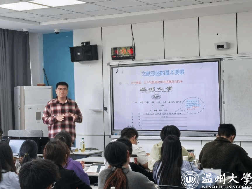 严磊老师主讲《法学文献检索与论文写作》课程中的"文献综述的基本要素"章节。他以自身博士论文为实例,详细阐述了文献综述的形式与内容要素。紧扣本科教育教学评估标准,严老师运用拆字法精准解析文献综述的核心构成,并深入讲解了三种总领段的撰写技巧。其诙谐幽默的授课风格,巧妙消解了文献综述课程的枯燥乏味,生动鲜活的案例更是令学生们听得津津有味,获益匪浅。