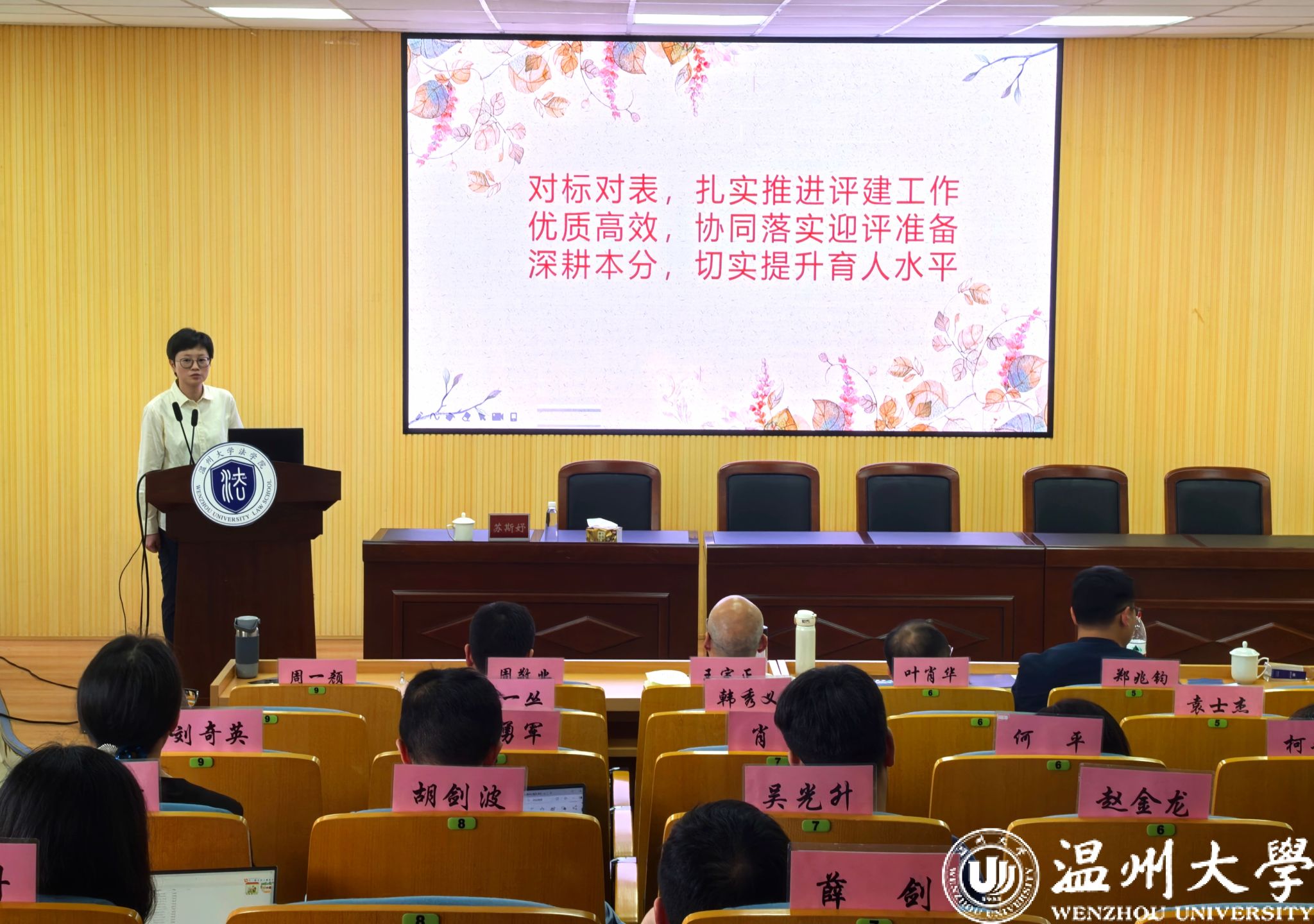 周一颜副院长针对本科教学审核评估迎评工作,就当前本科教学质量提升月的重点任务进行部署,要求全体教师提高认识,对标对表,协同配合,确保评建工作顺利推进,切实提升育人水平。av天堂 教学督导委员主任谢丽珍副教授就毕业论文中期检查和期末试卷检查工作中出现的问题作反馈说明。