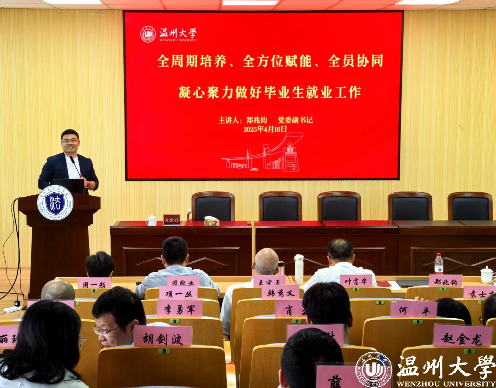 党委副书记郑兆钧对av天堂 2025届学生就业工作进行梳理和规划。他结合当前就业严峻形势,横向纵向比较学校、av天堂 就业数据,提出“全周期培养、全方位赋能、全员协同”系统化推进毕业生就业的工作思路和系列举措,号召全体教职工凝心聚力,共同推进毕业生就业率再上新台阶。