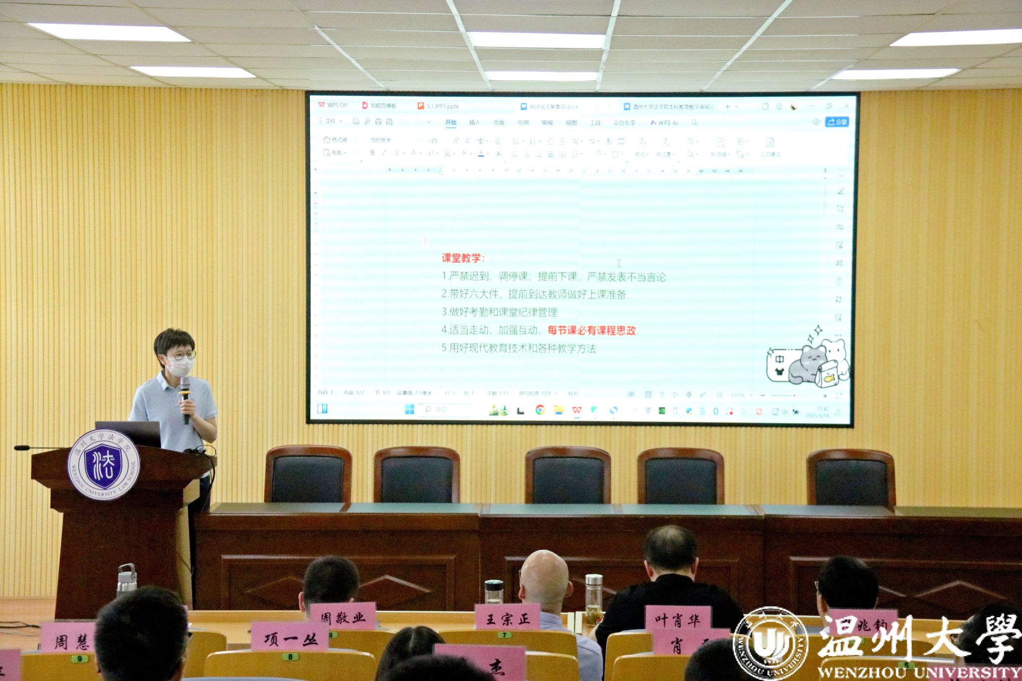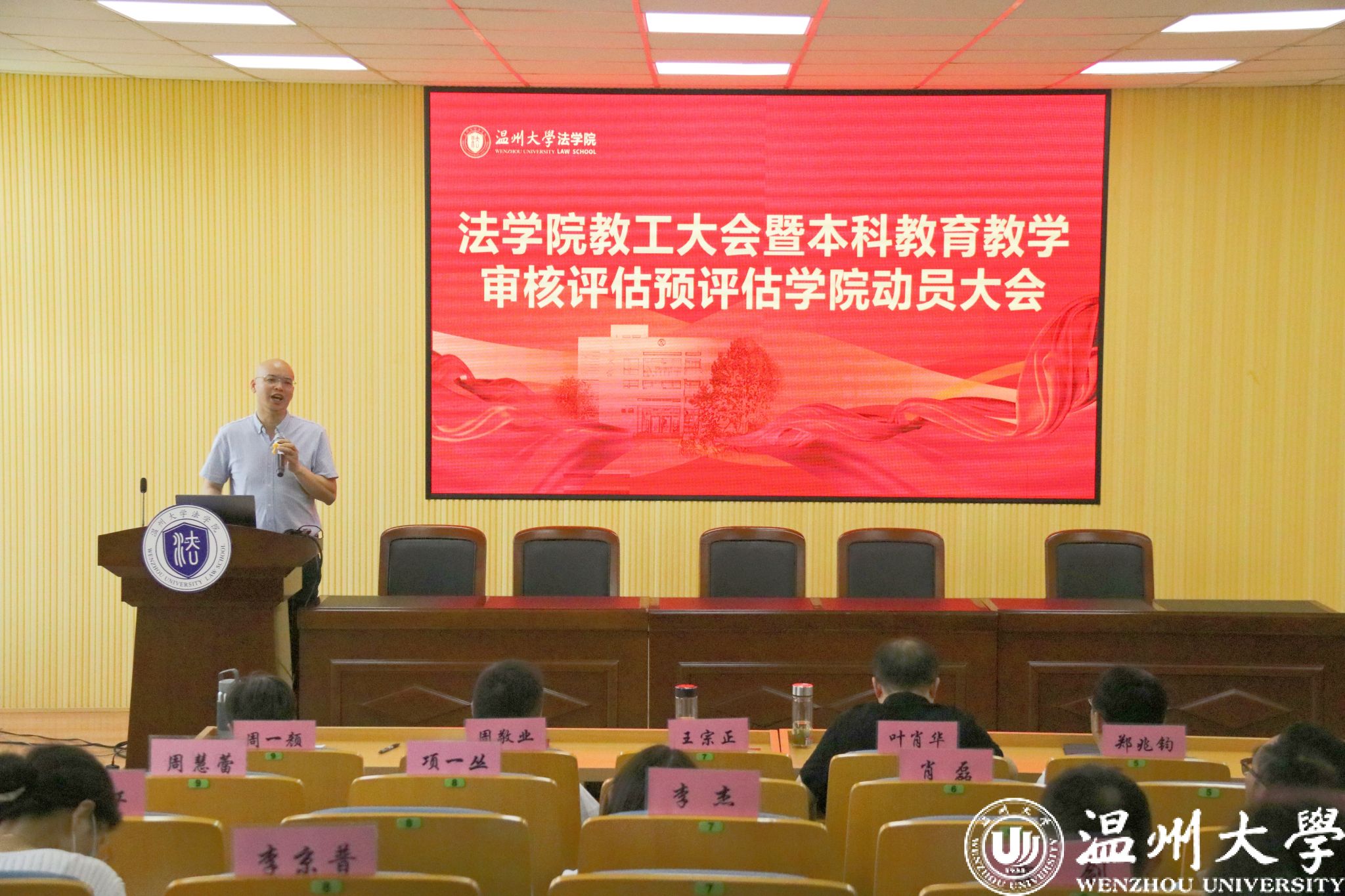 会上,周一颜副院长传达了学校开展本科教育教学审核评估预评估工作的主要任务与目的、重点方向及流程。她要求大家充分认识评估工作的意义,加强课堂管理,强化教师在课堂的第一责任人的作用,加强课程思政建设。此外,就试卷的命题与批改、毕业论文的审核和迎评材料规范化整理,会上也作了要点提醒。