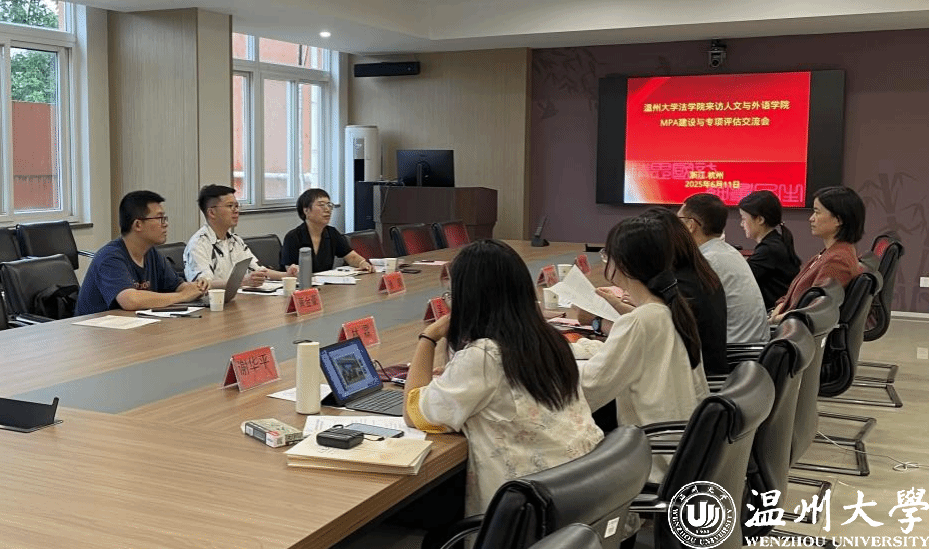 6月11日下午,我院张鹏一行首先来到中国计量大学人文与外语av天堂 调研交流。中国计量大学人文与外语av天堂 副院长朱锋刚表示热烈欢迎。他简要介绍了中国计量大学人文与外语av天堂 的历史沿革、学科建设、师资队伍以及近年来在教学和科研方面取得的成果等。学术副院长霍荣棉详细介绍了中国计量大学MPA专项评估工作的经验和做法,随后双方围绕着教育环境与办学定位、招生管理、课程设置、案例建设、教学效果与能力培养等专项评估各方面开展了高质量发展的深入交流。最后,我院张鹏、付翠莲表示中国计量大学MPA中心在人才培养和专项评估方面的有益经验能为av天堂 MPA建设与评估提供借鉴和启示。此外,双方还就行政管理专业人才培养方案和办学特色进行了广泛深入交流。