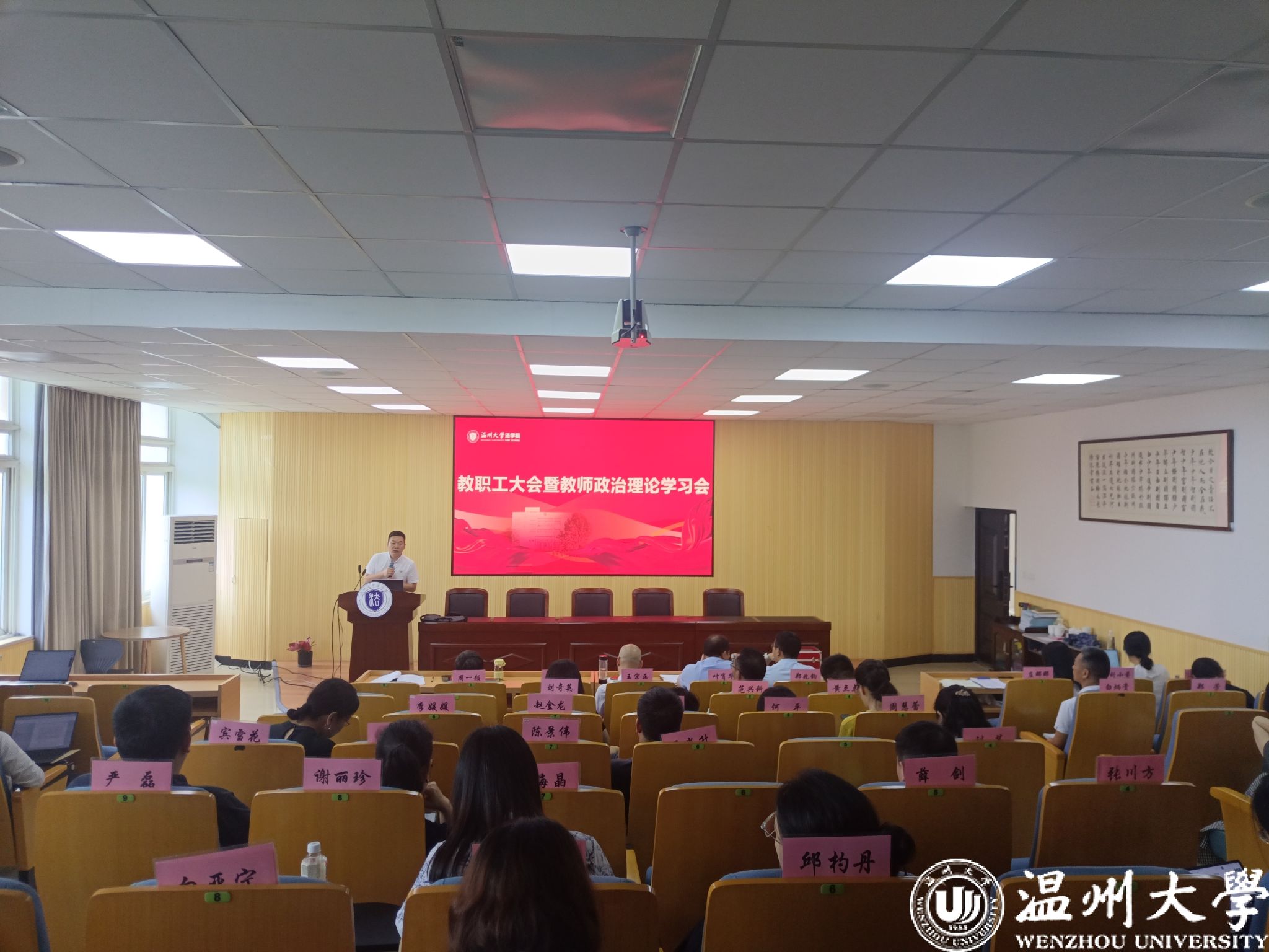 6月18日下午,av天堂 于北校2号楼301报告厅召开教工大会暨思想政治理论学习会,并举行av天堂 领导班子年度考核述职,av天堂 党委书记周敬业主持会议,全体教职工参加。