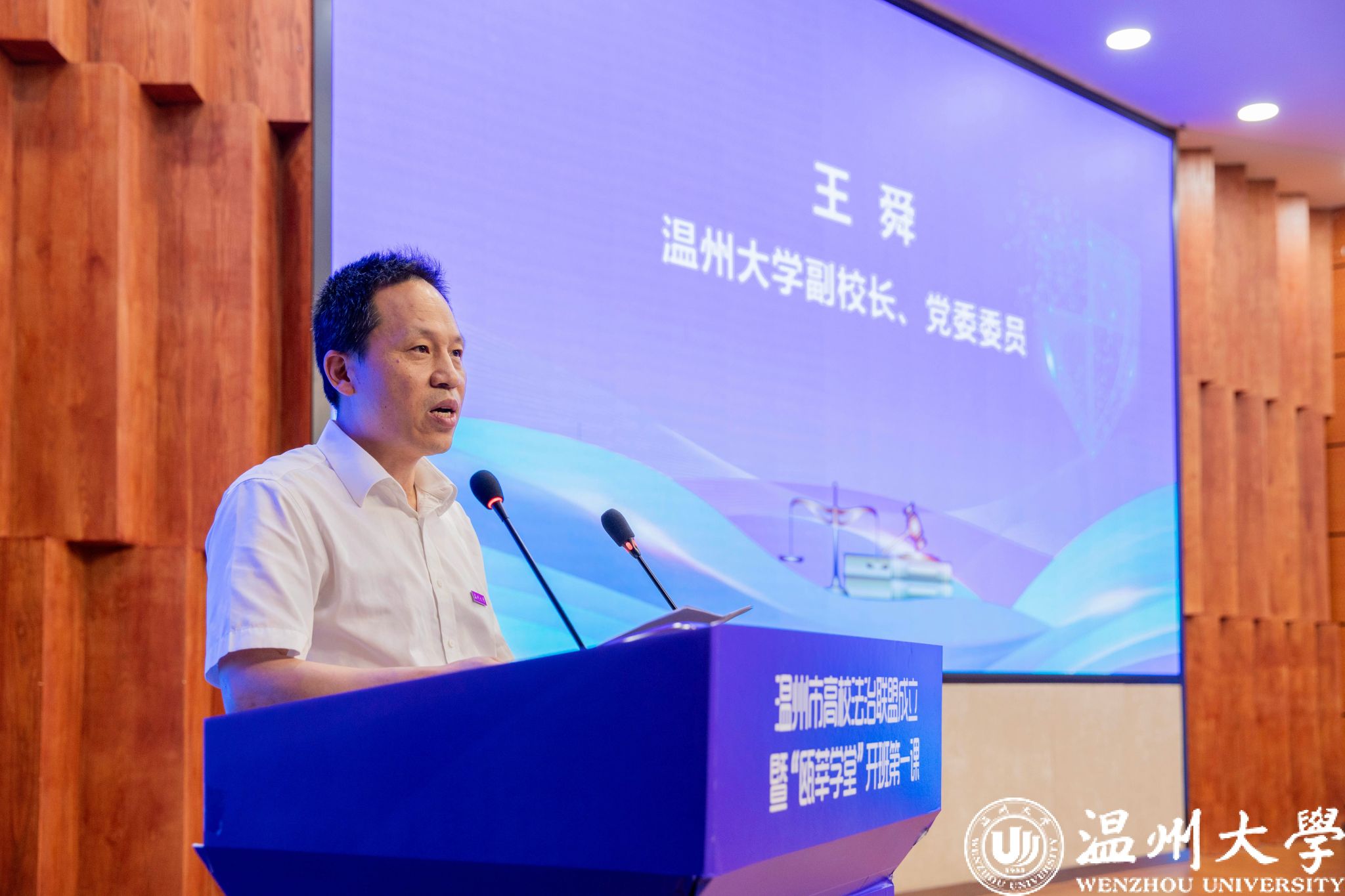 av天堂 副校长、党委委员王舜作为承办方致辞,他对联盟的成立表示热烈祝贺,并表示av天堂 将全力开放平台资源,打造法治教育“共享枢纽”;全力承接重点项目,争当法治实践“先锋标杆”;全力创新育人机制,培育法治校园“温大经验”。