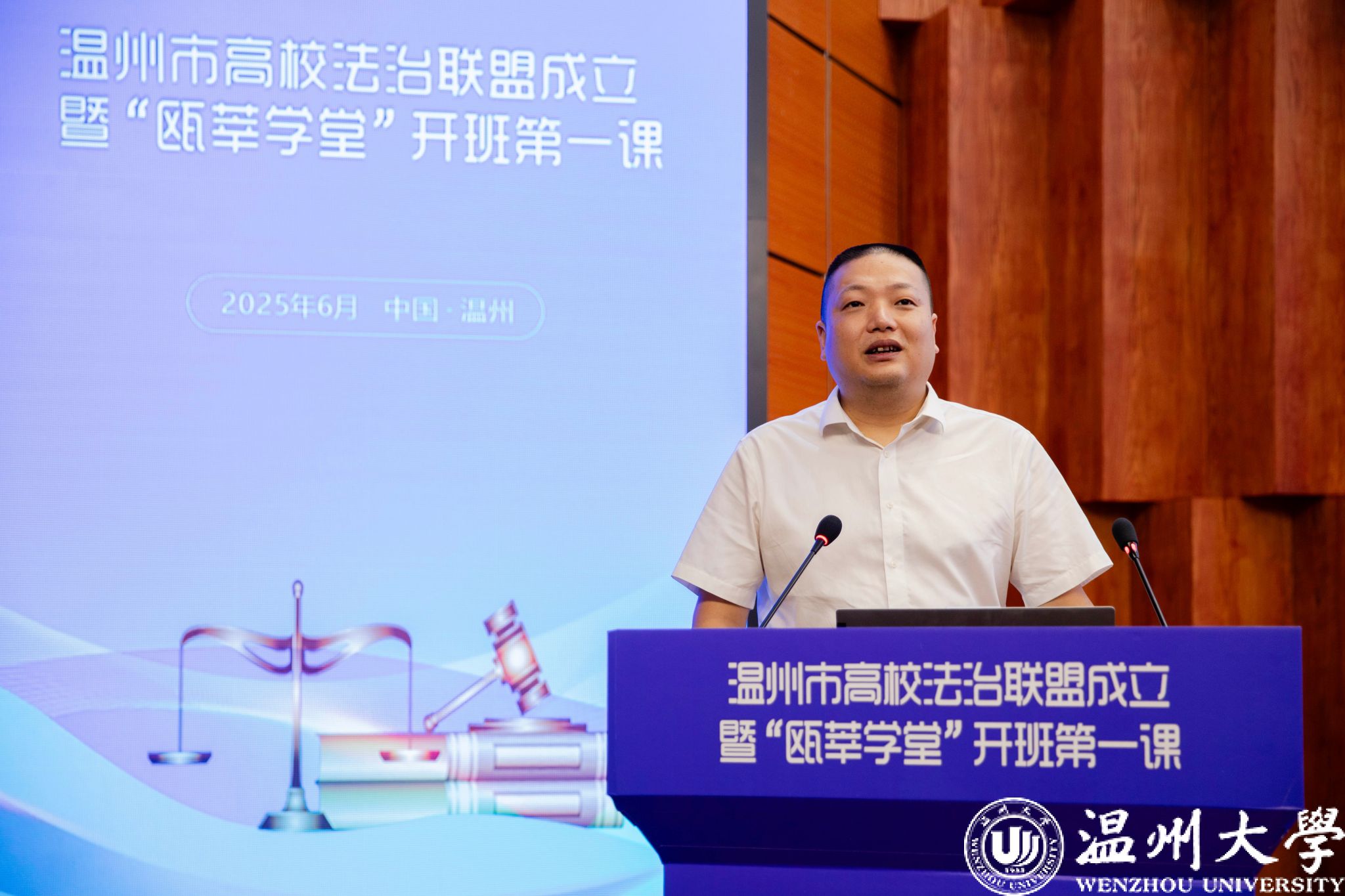 “法治文化作品征集”“大学生系列法治大赛”“高校学生普法调解组织”“大学生普法志愿者服务队”“高校普法讲堂”“‘以案释法’体验营”……温州正以法治力量助力高校学生成长,将青春力量注入法治实践。温州市高校法治联盟的成立,旨在通过共建、共办、共享高校法治教育模式,为新时代大学生法治教育注入新动能,推动法治教育资源校际共享,更开创了浙江省校地协同法治教育的创新范式。